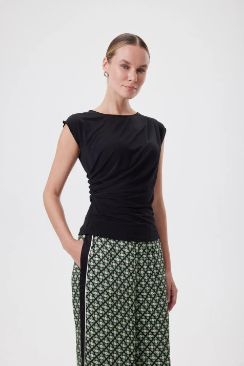 Блузка из двух типов ткани: стан – из тактильно приятной ткани с деликатным атласным блеском, рукава – из невесомого шифона. Прямой силуэт создаёт гармоничный и лаконичный облик. Модель идеально подходит как для повседневного стиля, так и для особых событий, придавая вашему образу изысканность и неповторимость.