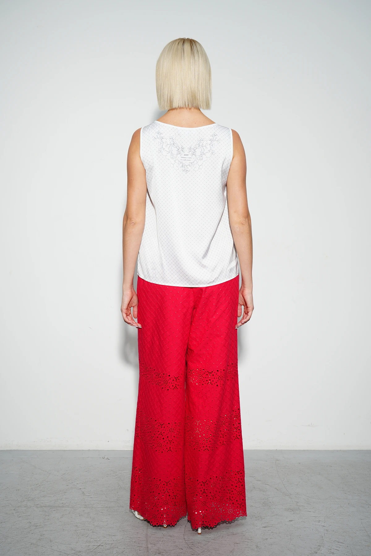 Топ «Летнее утро» — прекрасный выбор для тех, кто хочет добавить в свой гардероб элегантность с ноткой летнего очарования. Авторский принт на спинке с силуэтами ягодных веток и надписью «summer time is a pleasure» (с англ. «летнее время — это удовольствие») добавляет модели уникальности и романтического настроения. Топ свободного силуэта с нагрудными создает мягкие и плавные линии силуэта. Круглый вырез горловины и проймы, оформленные тканью-компаньоном, придают модели завершенность.