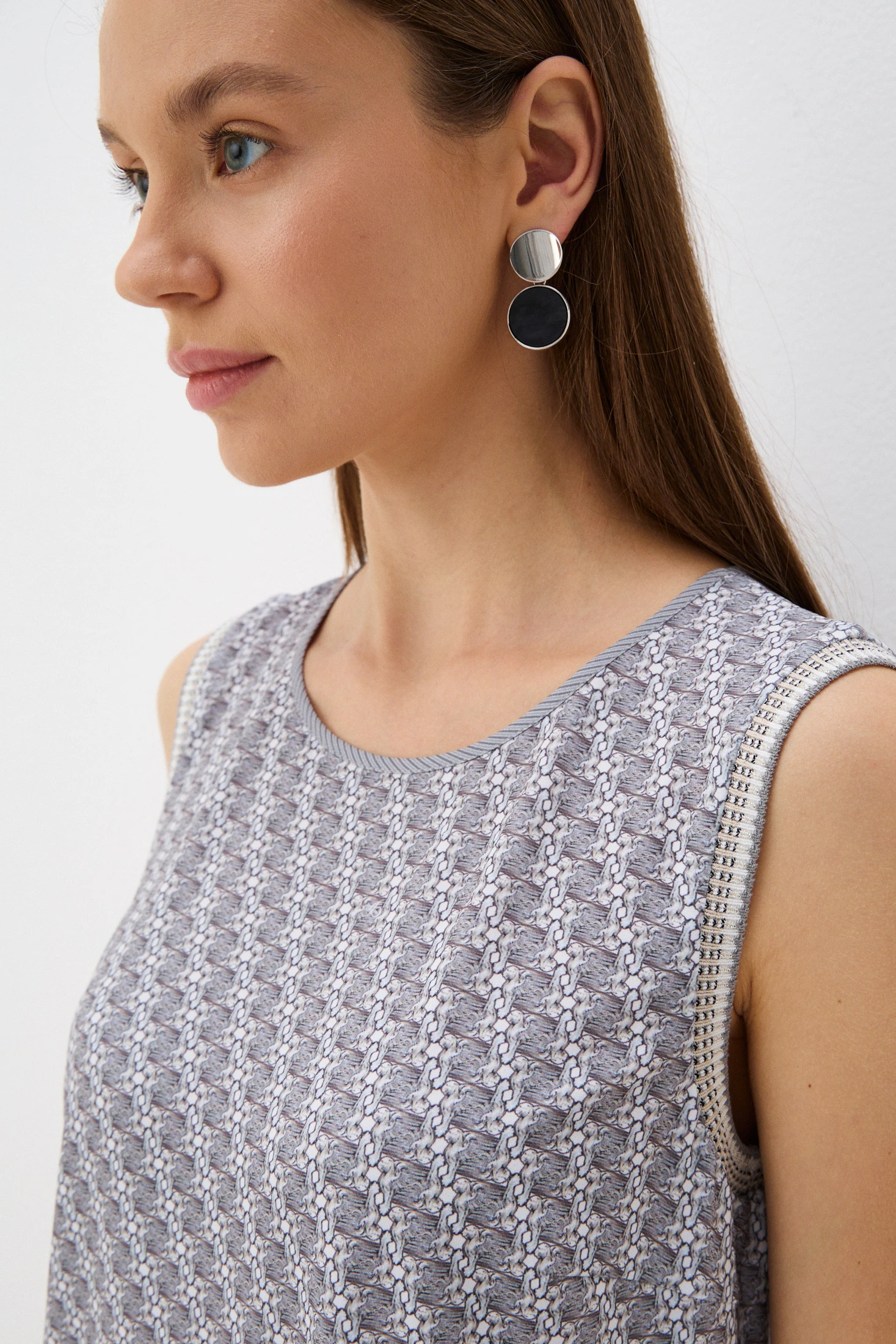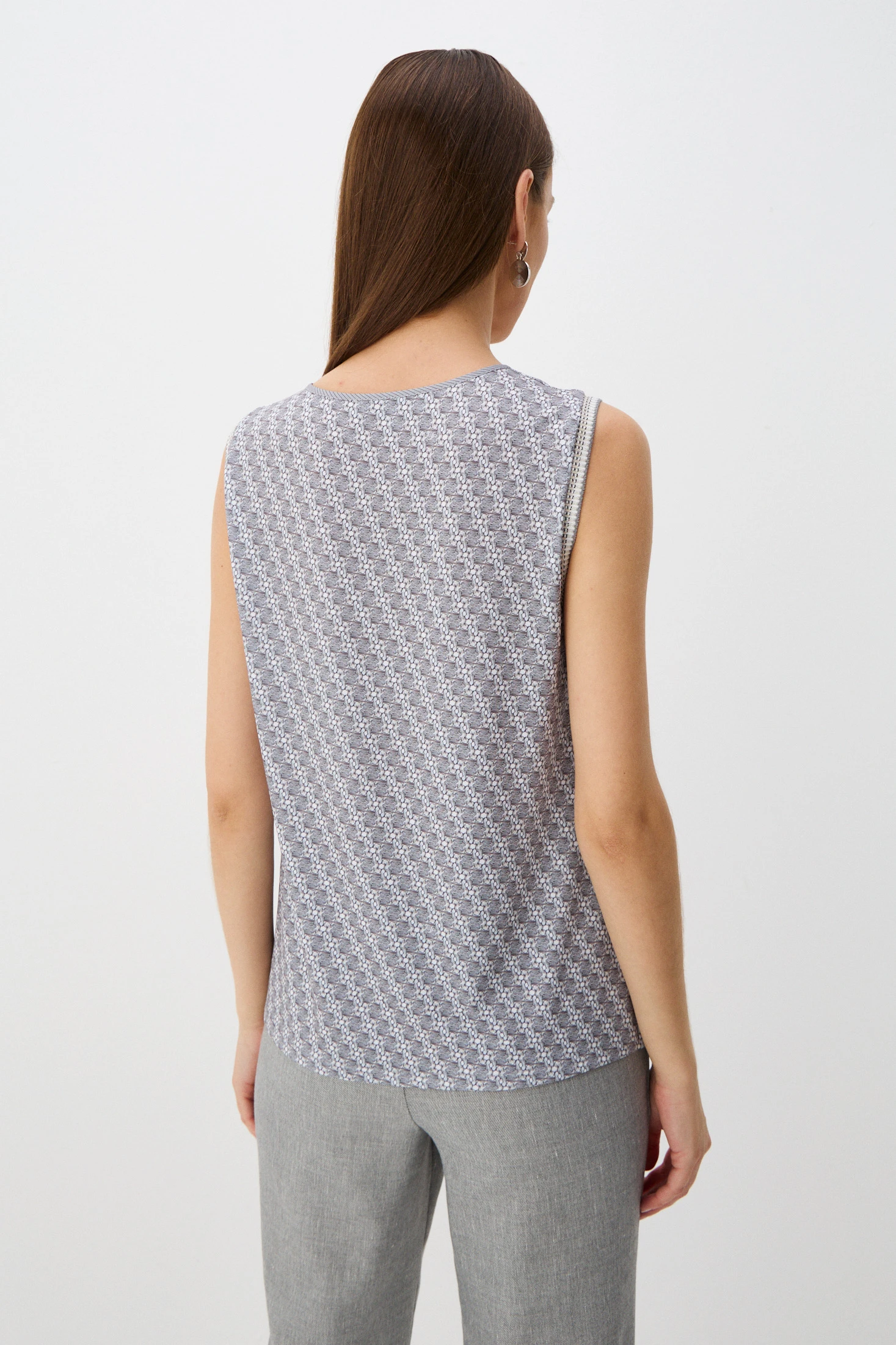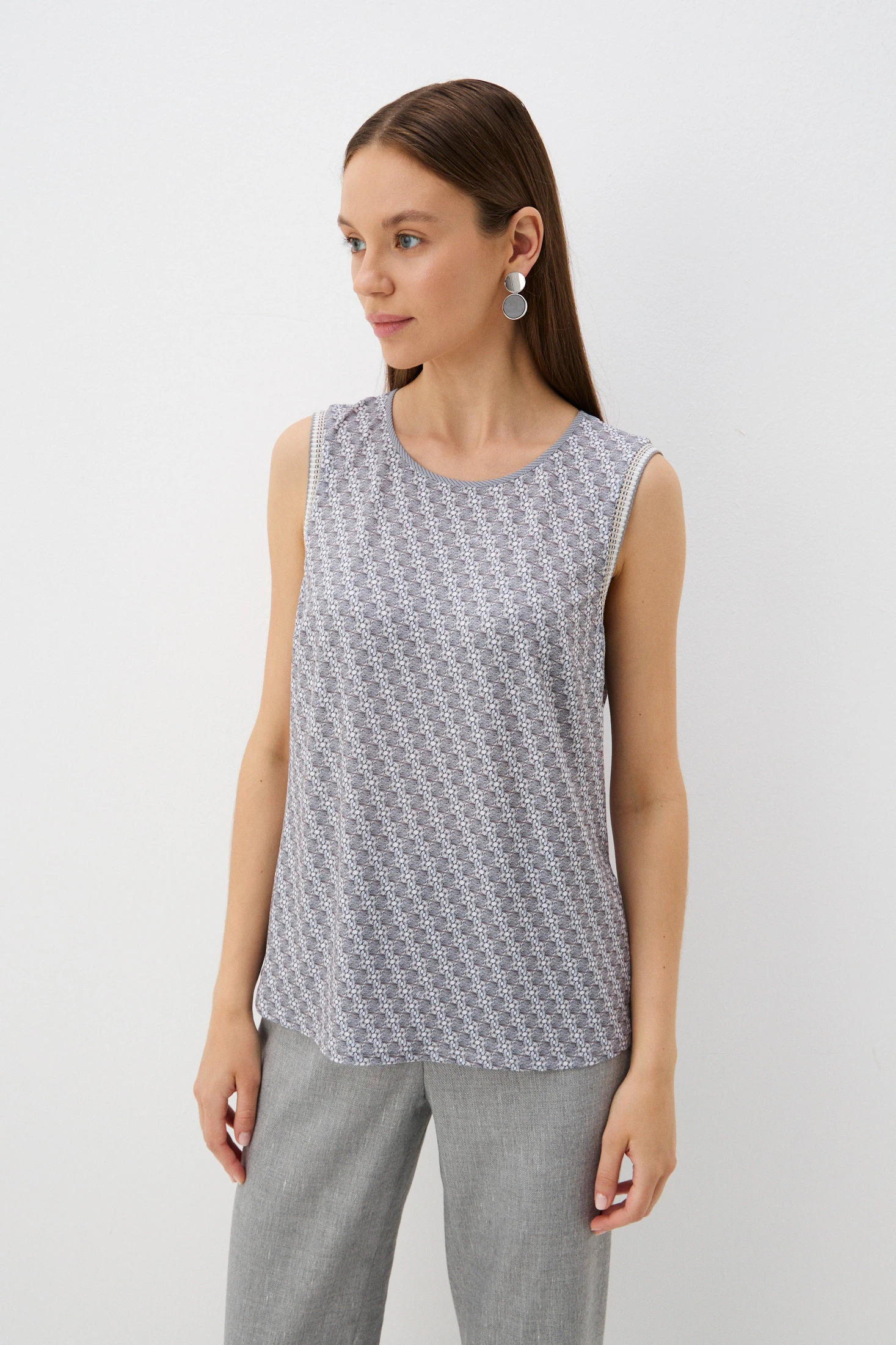 Лаконичный топ с авторским принтом – элегантная нота в Ваш базовый гардероб. Эластичный и комфортный бифлекс, позволяющий сохранять свободу движений, прост в уходе. Ткань имеет эффект «холодка» – подарите себе комфорт в жаркие летние дни! Модель прекрасно сочетается с разными юбками и брюками коллекции.