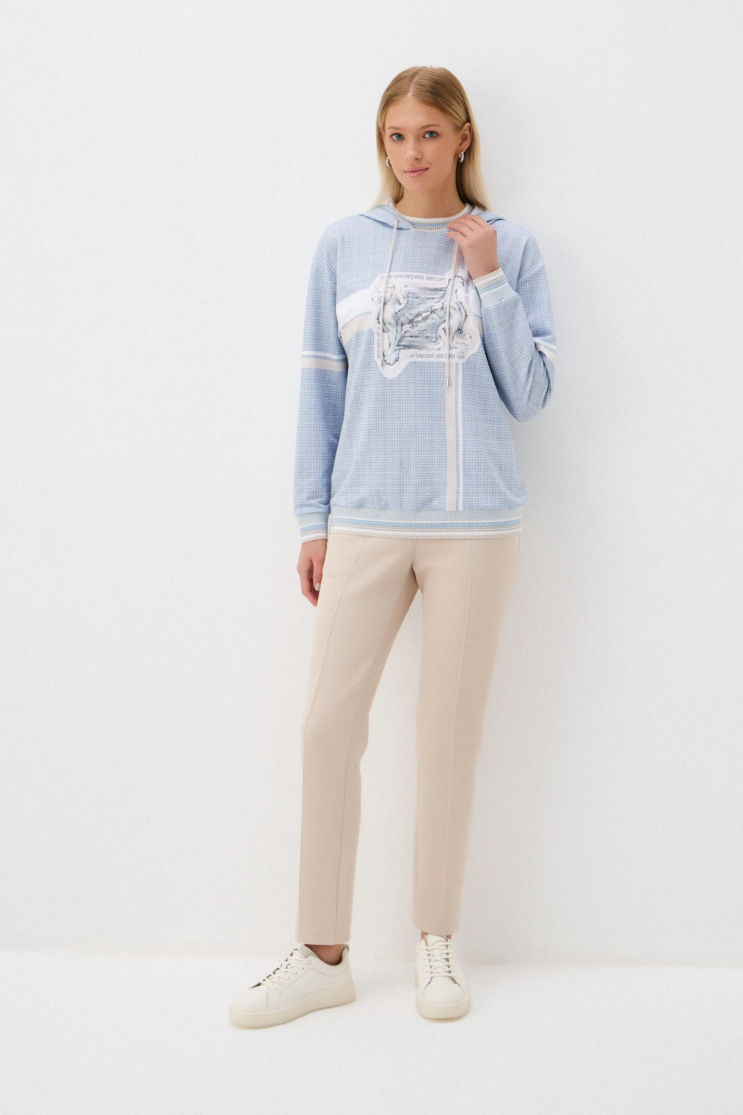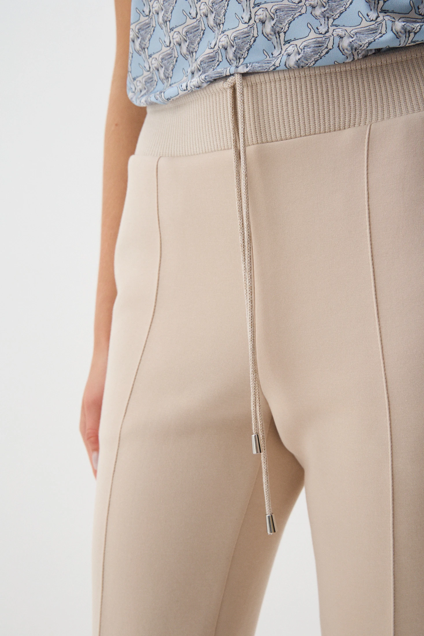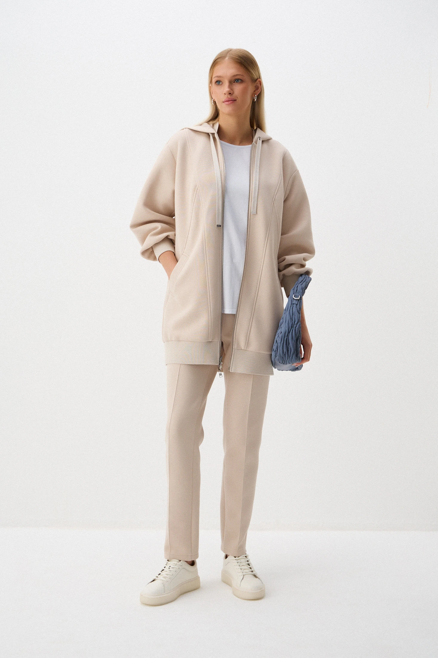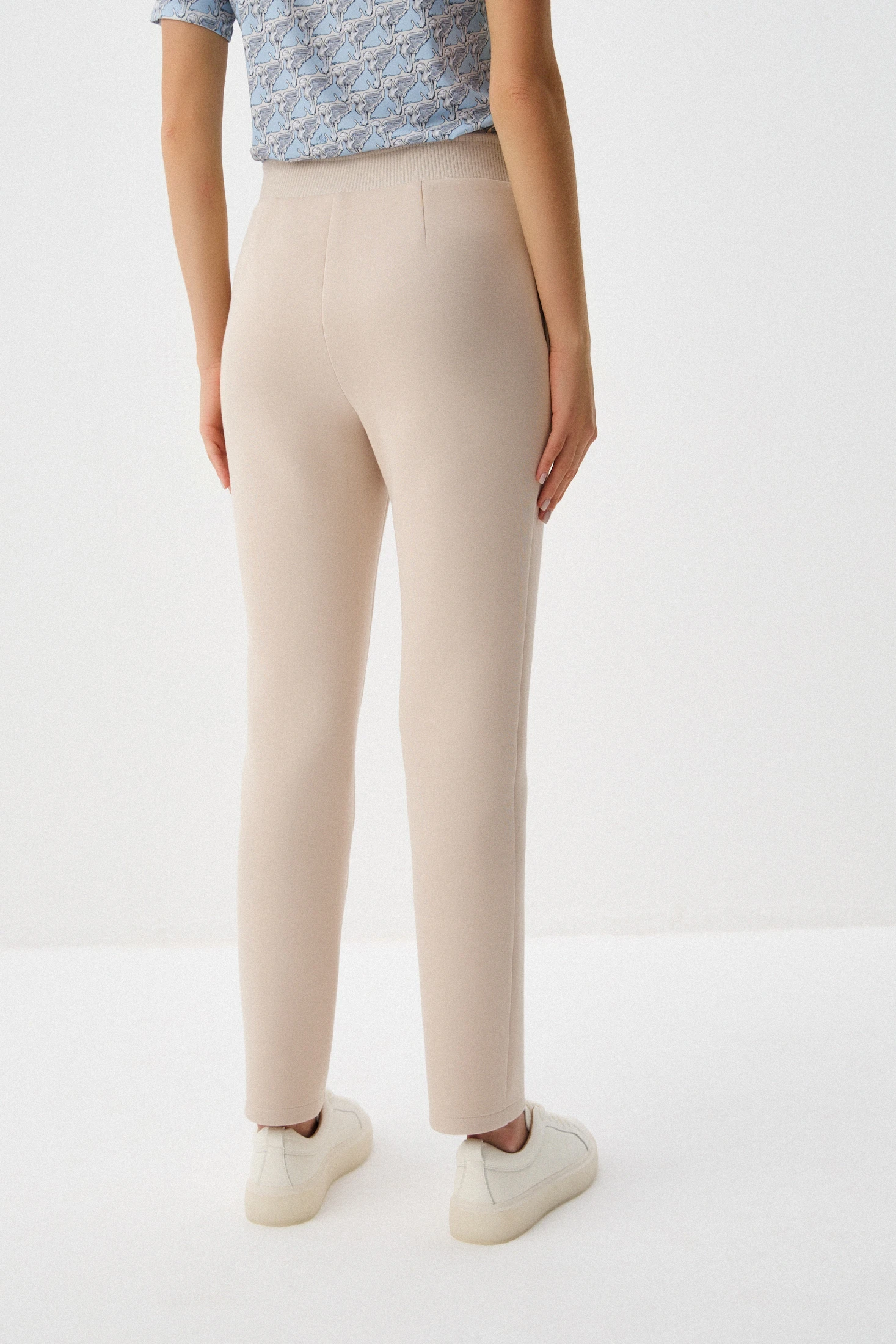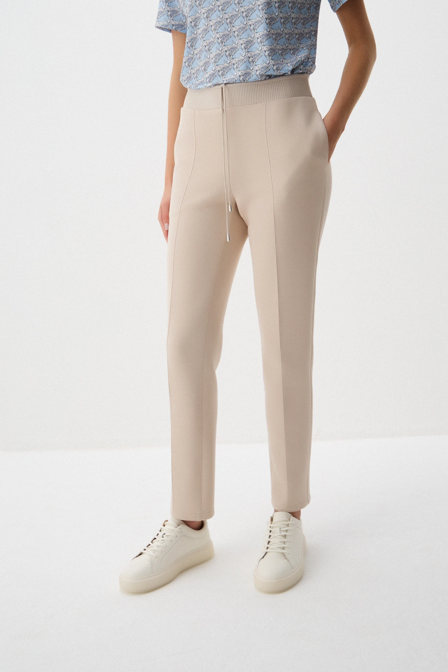 Зауженные брюки из плотного трикотажа на основе хлопка – комфортная базовая модель. Нейтральный оттенок «тёплый песок» позволяет создавать бесчисленное количество образов в романтическом стиле, стиле casual и деловые образы в офис с нестрогим дресс-кодом. Отстрочные стрелки визуально подчёркнут стройность ног. Удобные карманы и трикотажный пояс обеспечивают комфорт в носке.