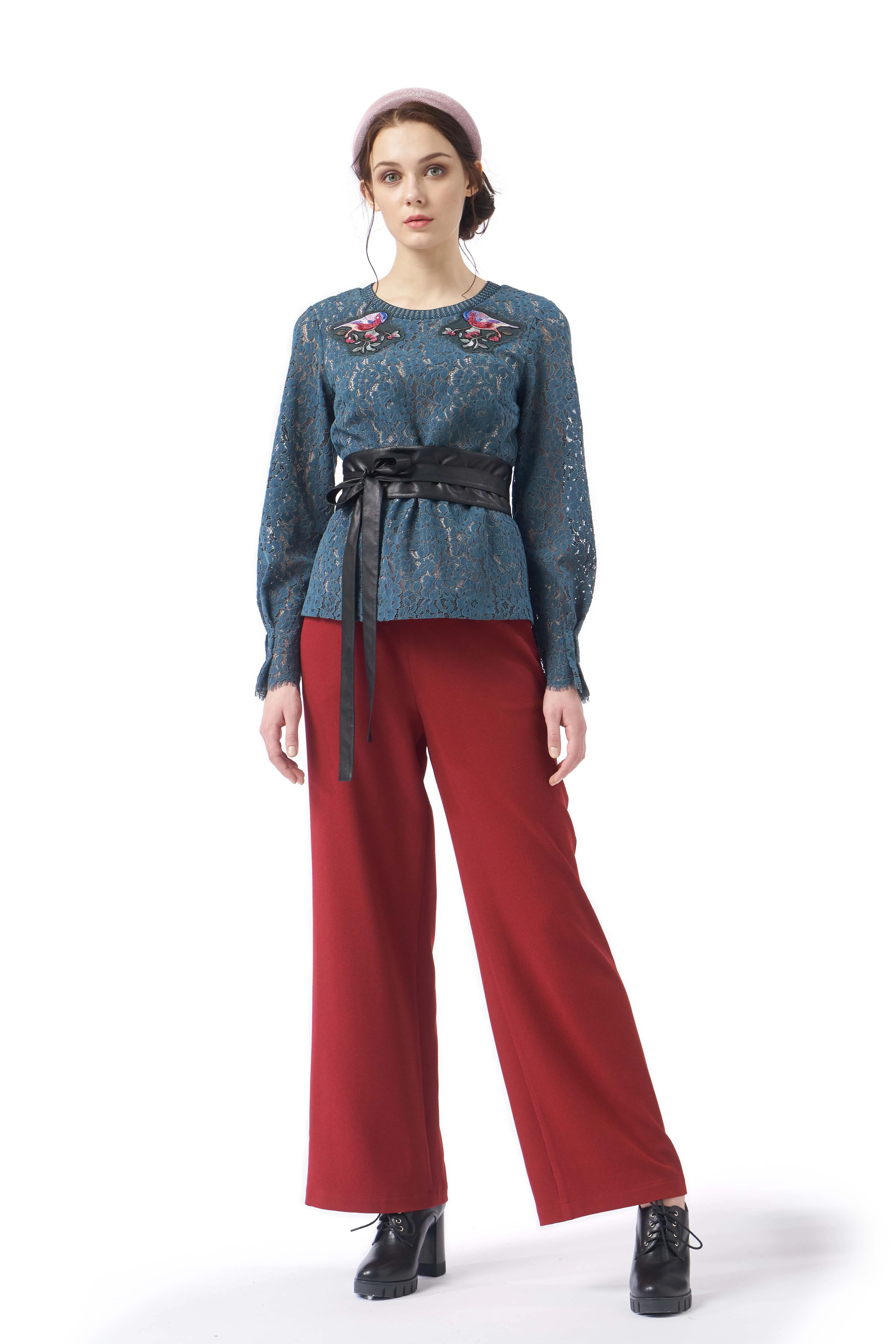 этом крое раскрывается пластичность и благородство ткани модели. Брюки выгодно подчёркивают