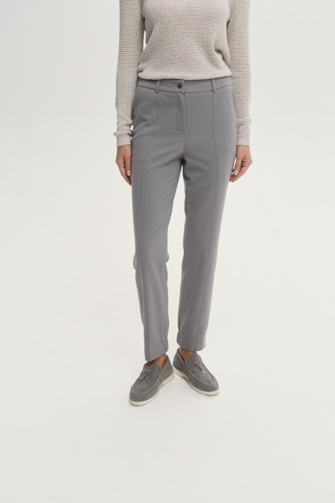 Зауженные брюки из лёгкой смесовой ткани с добавлением хлопка в голубом оттенке — стильная и комфортная модель. Точный крой с защипами и вытачками обеспечивает идеальную посадку по фигуре. На поясе – шлёвки для ношения ремня. Застёжка на молнию и брендированную пуговицу.