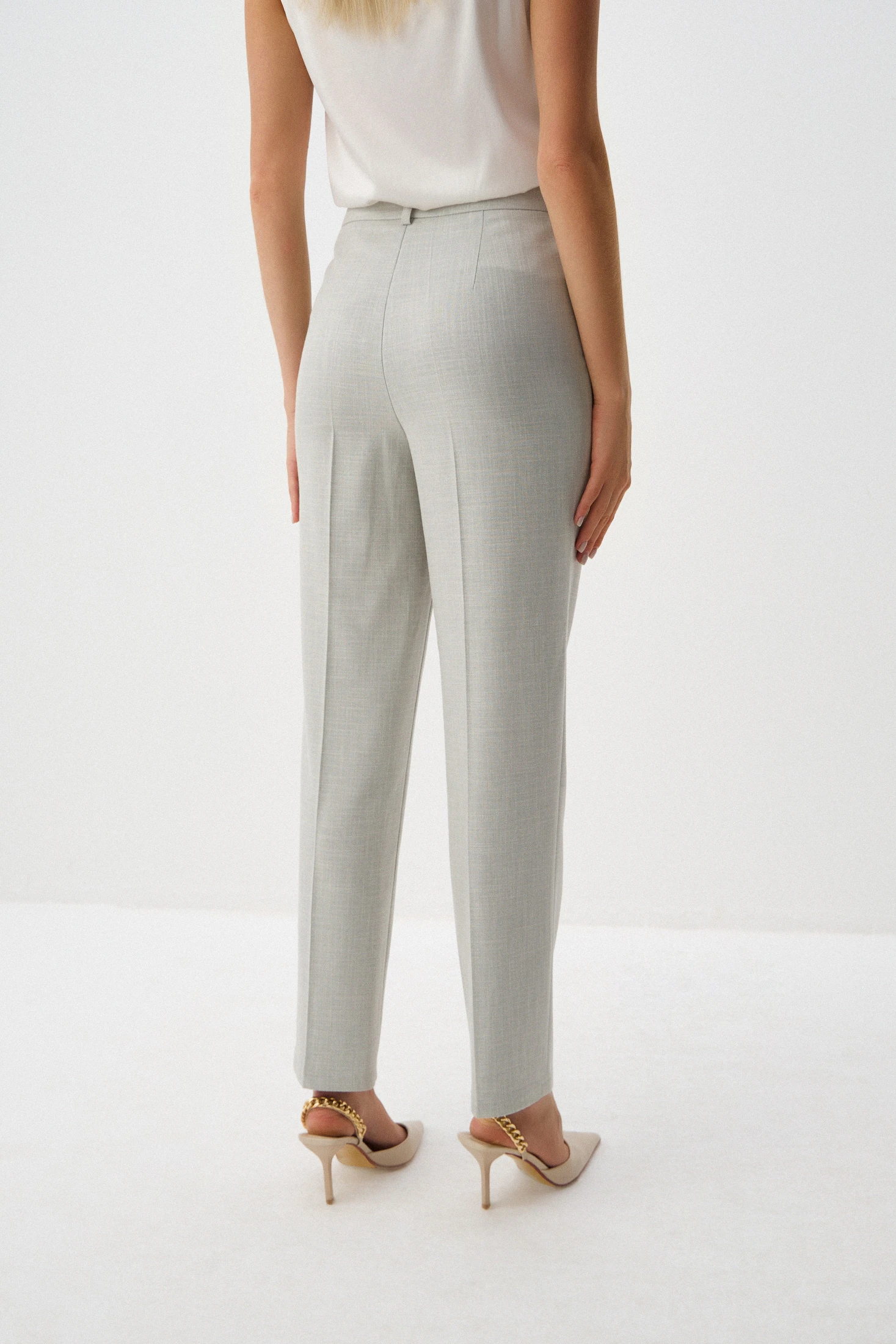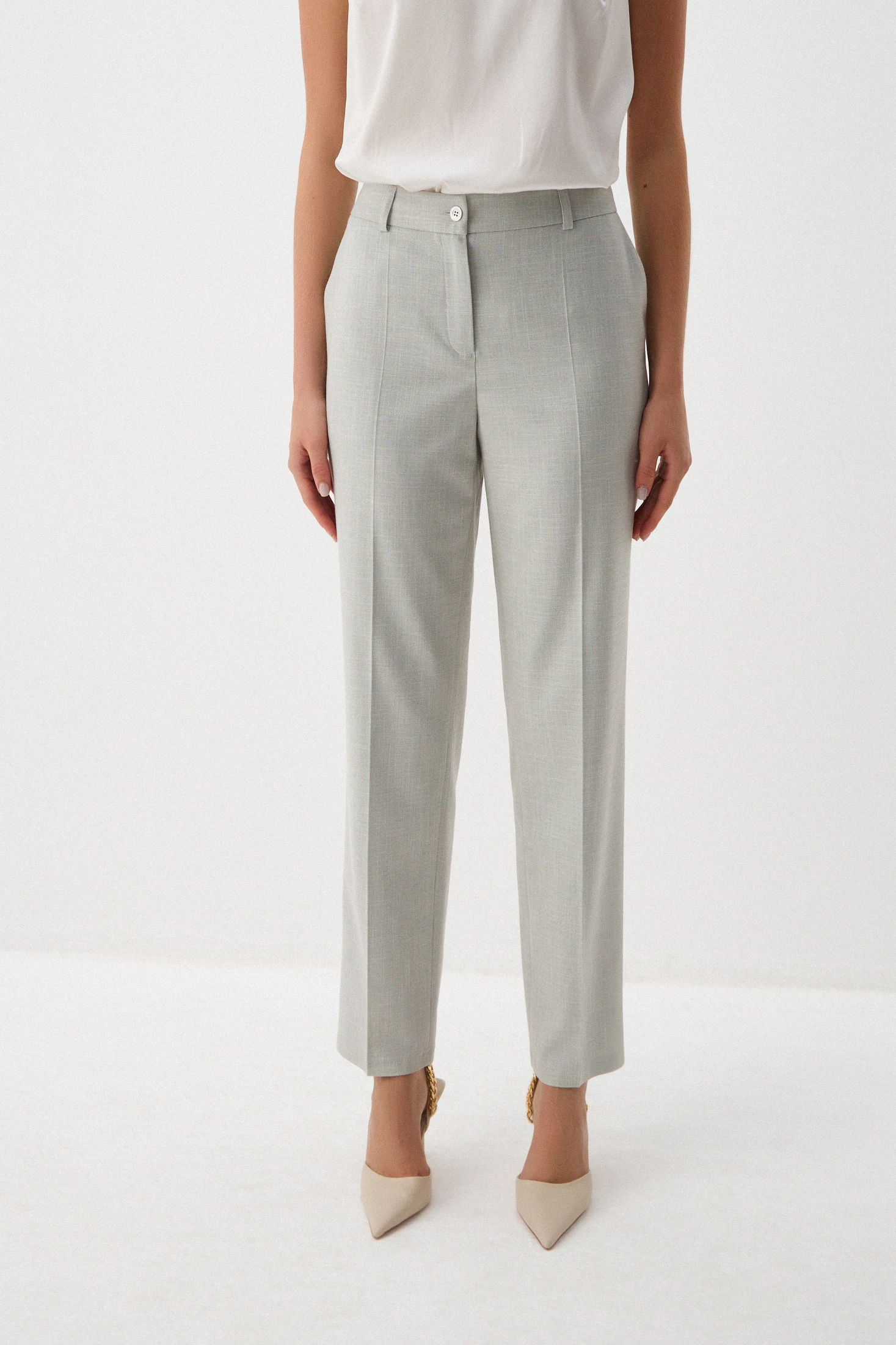 Монохромные брюки из костюмной ткани на основе вискозы – прекрасный выбор для весенне-летнего сезона. Зауженный крой придает брюкам современный и стильный вид, а также позволяет легко комбинировать их с различной верхней одеждой – от топов до свитеров. Брюки в пастельном оттенке «зелёный туман» станут акцентом в Вашем гардеробе, подчеркивая безупречный вкус и индивидуальный стиль.