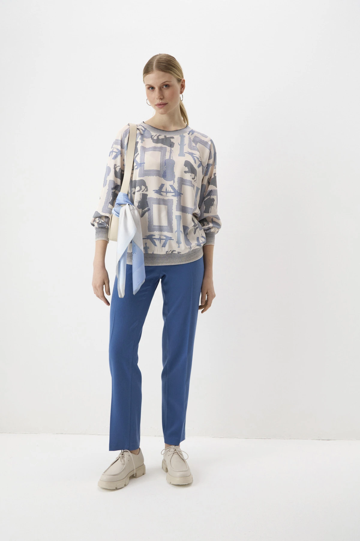 Зауженный крой брюк делает акцент на изящной щиколотке и выгодно подчёркивает красоту ног. Притачной пояс и вытачки обеспечивают идеальную посадку, а карманы – комфорт в носке. Абстрактный мелкораппортный принт добавляет фактурности. Создавайте сочетания с классическими рубашками, романтичными блузками и туфлями на каблуках – брюки подойдут как для образа в офис, так и для выхода в свет. С футболками, кардиганами и лоферами брюки станут основой для аутфита в стиле casual. А с озорными кедами и косухой – придадут дерзкую нотку в Ваш образ.