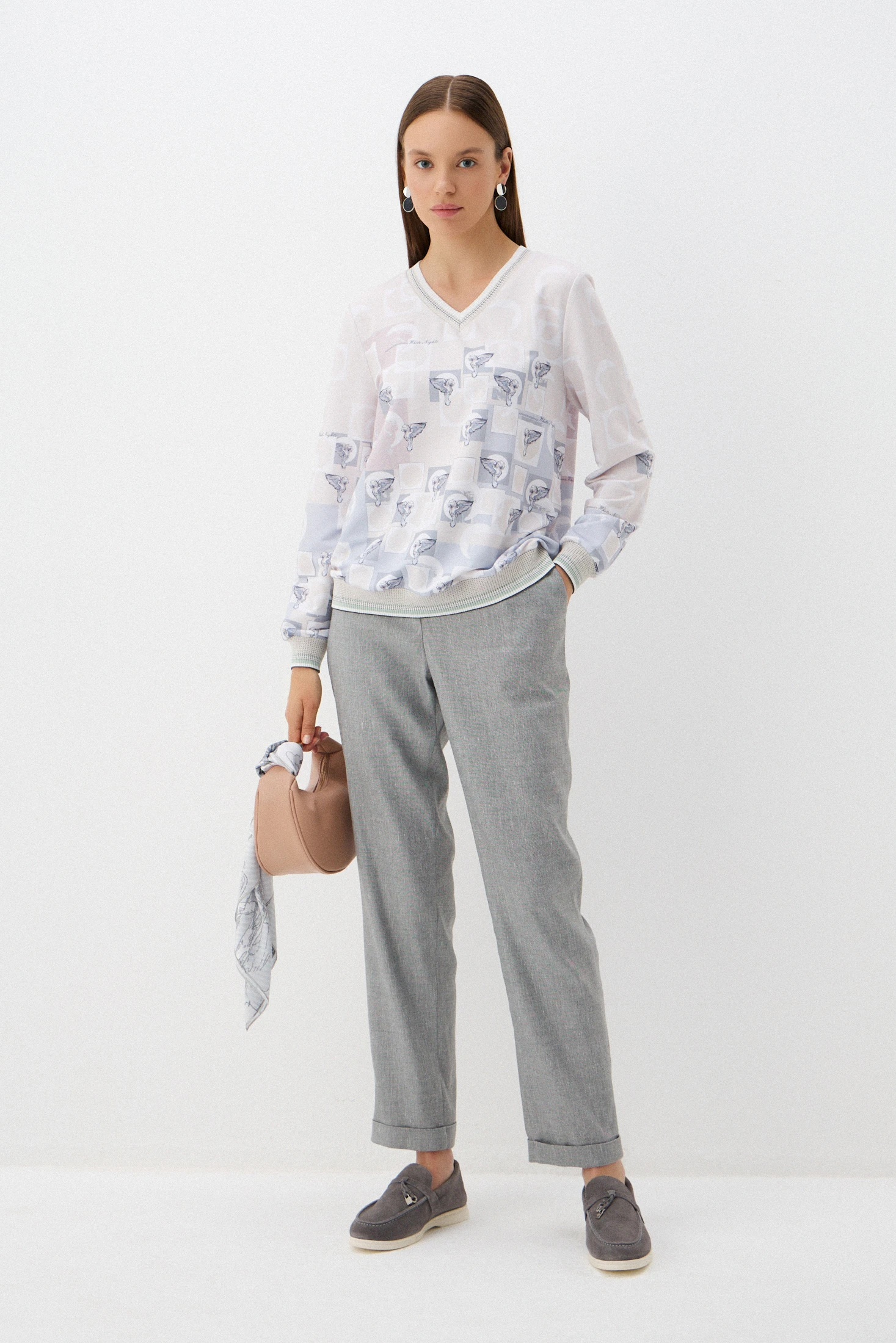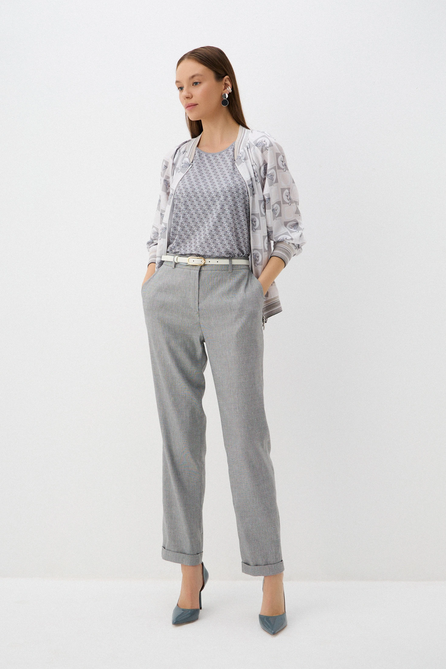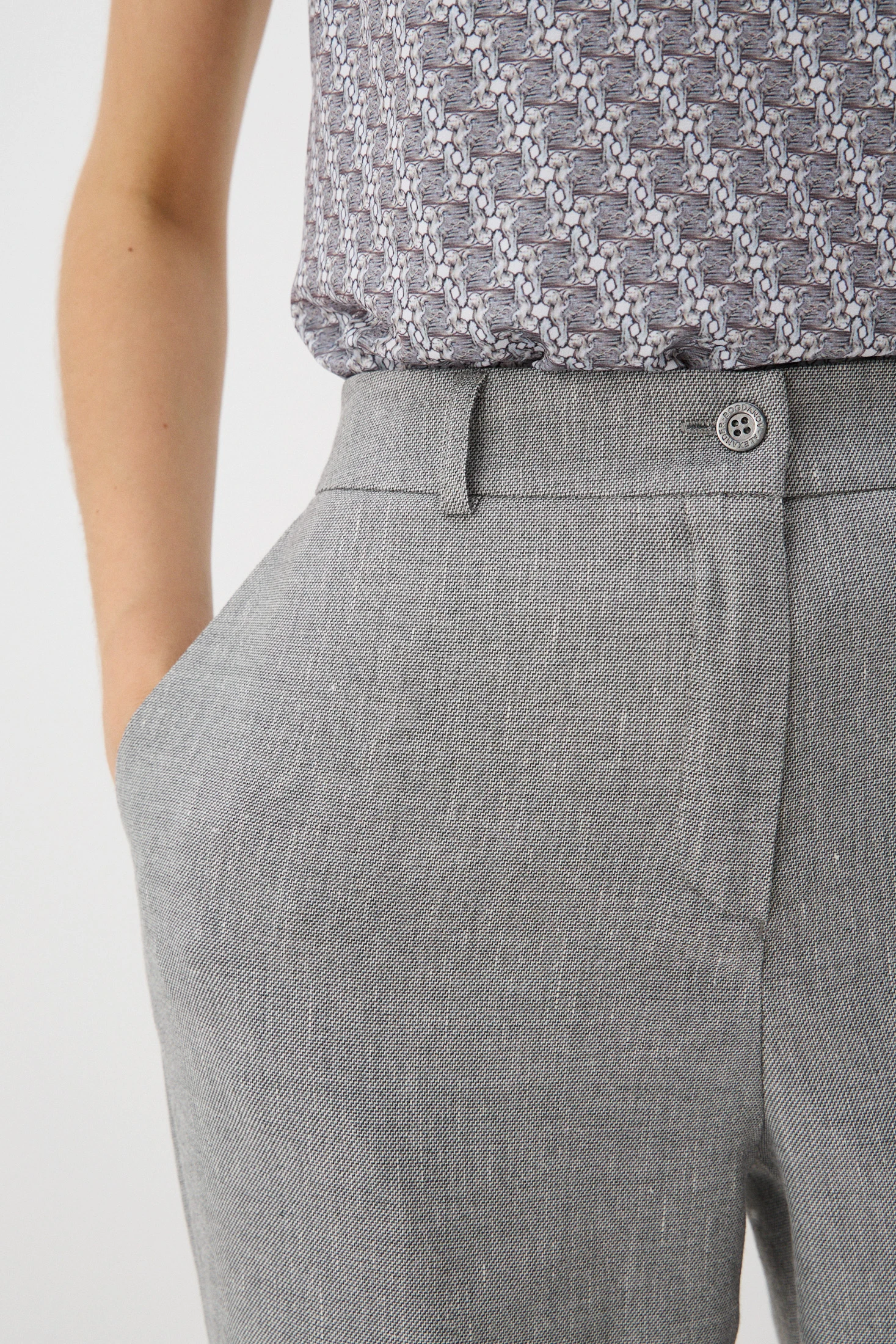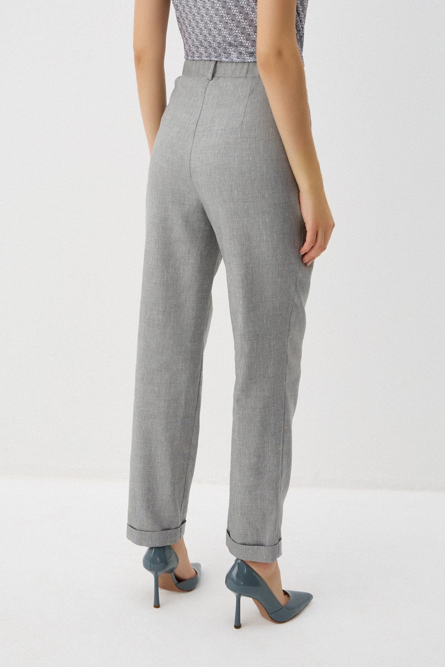 Серые брюки – универсальная базовая модель для создания элегантных и современных образов. Брюки созданы из фактурной ткани с добавлением кенафа – экологичного растительного волокна, обладающего повышенной износостойкостью. Вкрапления кенафа создают на ткани меланжевый эффект.