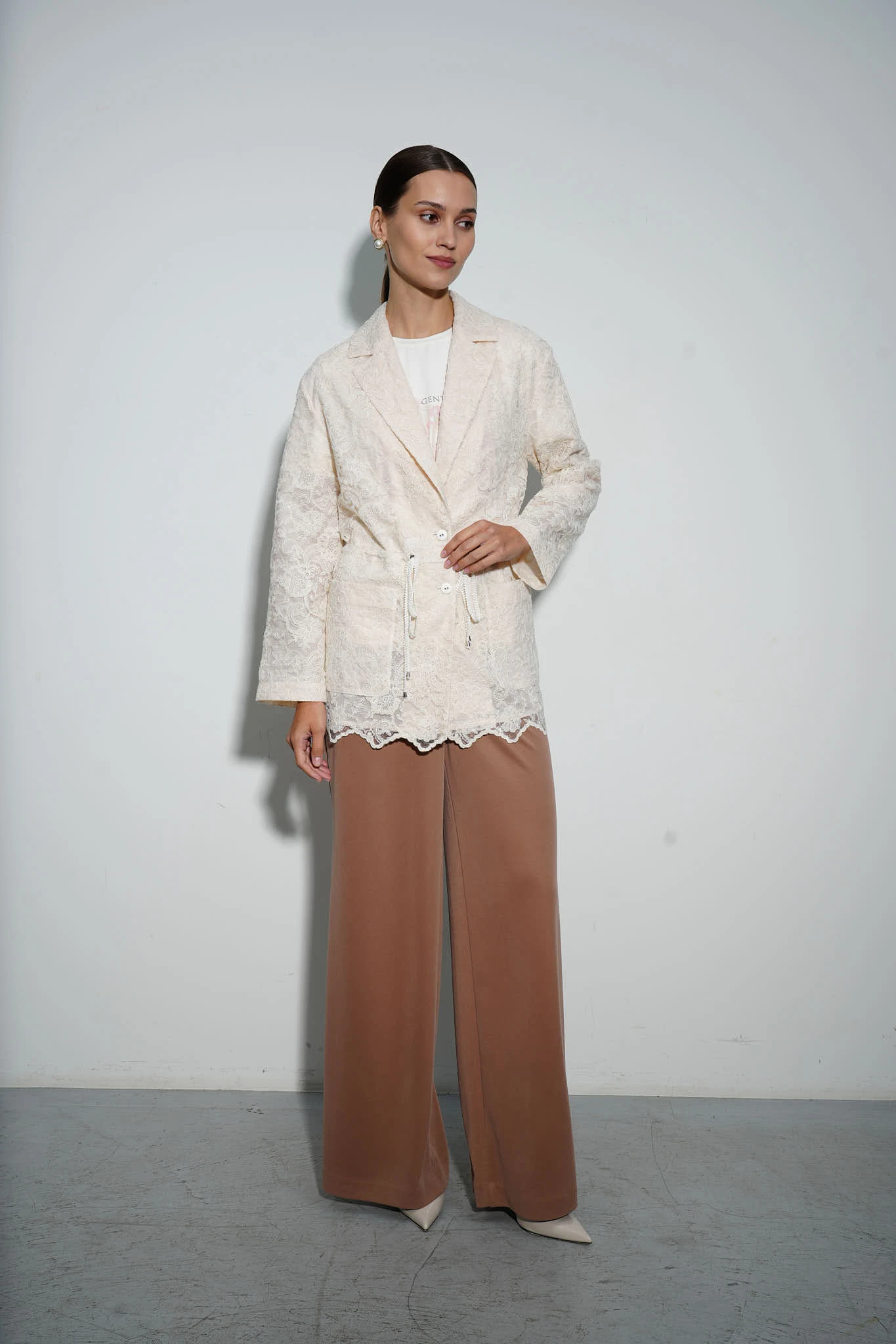 Брюки широкие кофейные