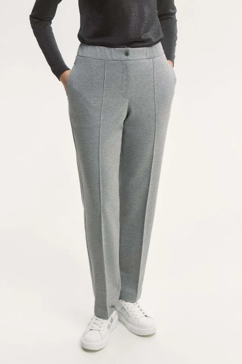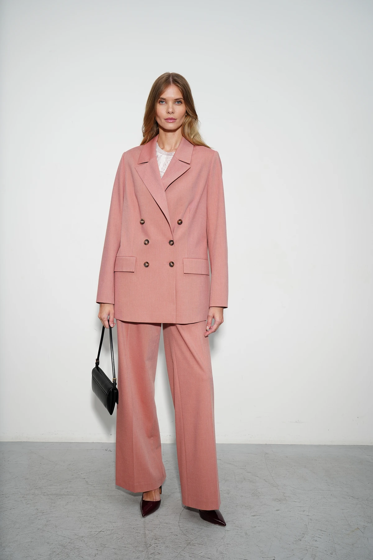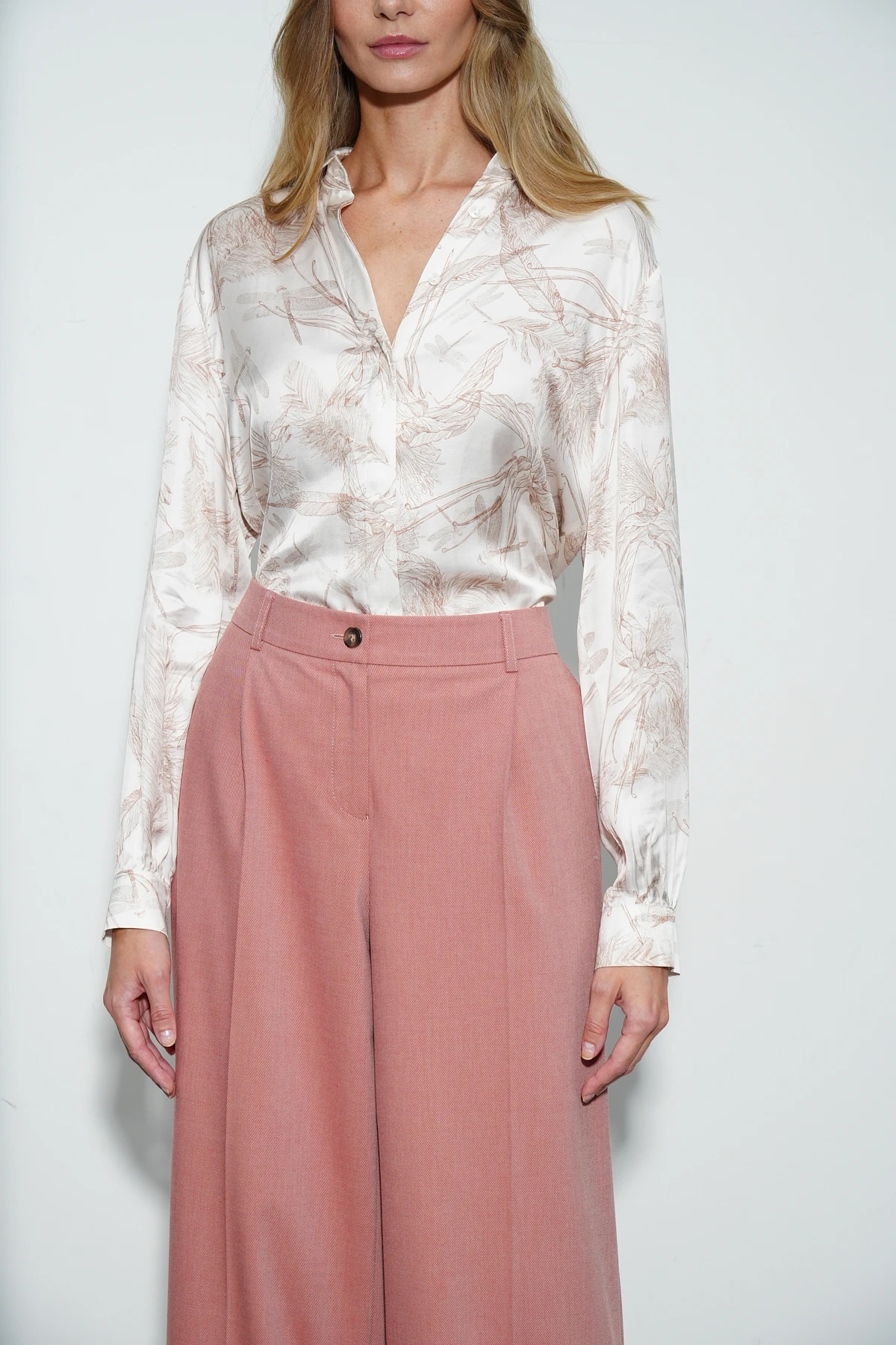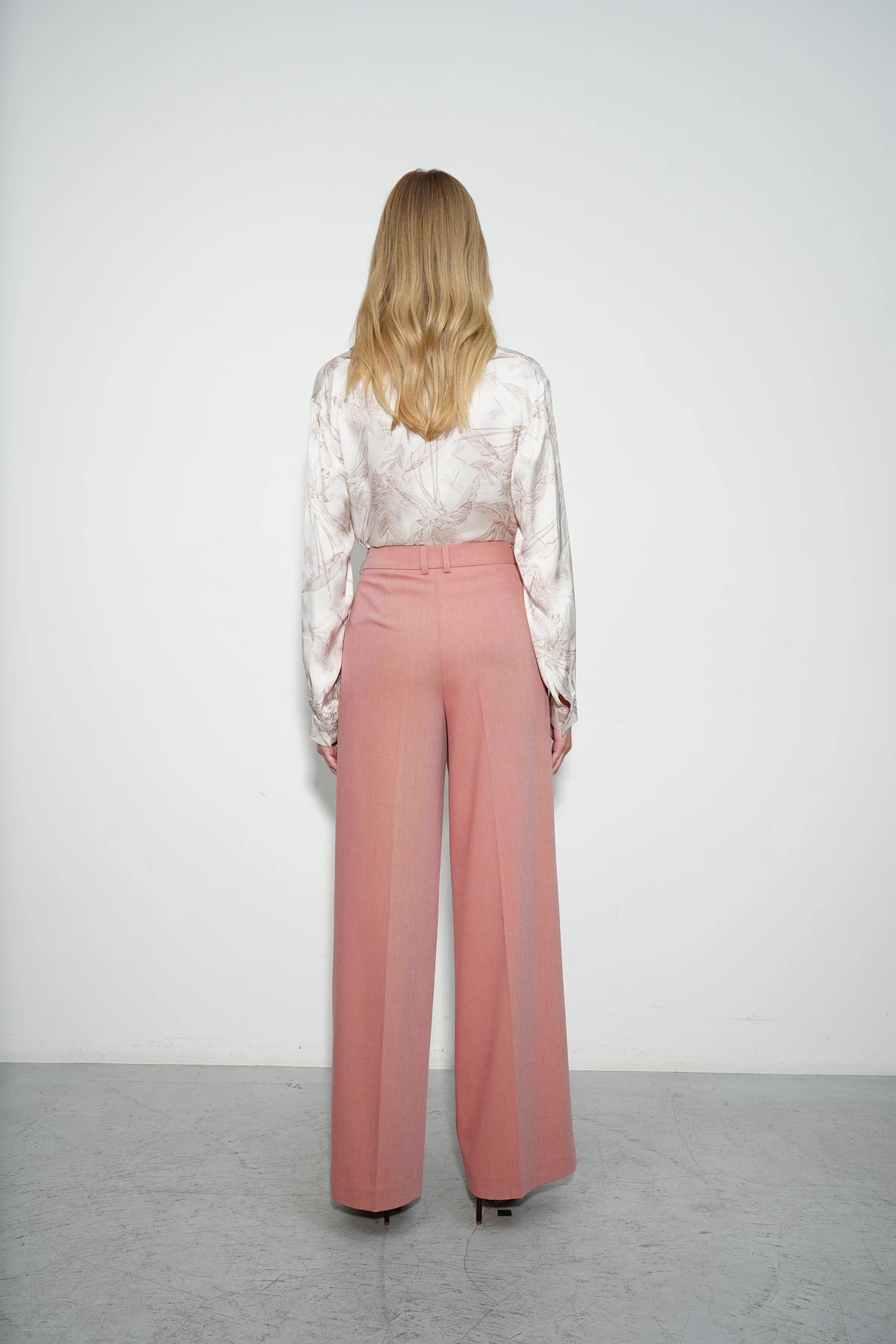Широкие брюки со стрелками из фактурной костюмной ткани с добавлением вискозы в терракотовом оттенке. Защипы и вытачки обеспечивают идеальную посадку по фигуре. Карманы добавляют практичности, а шлёвки на притачном поясе позволяют дополнить образ ремнём. Застёжка на молнию и роговую пуговицу. Универсальная модель гармонично впишется в деловой, повседневный или вечерний стиль.