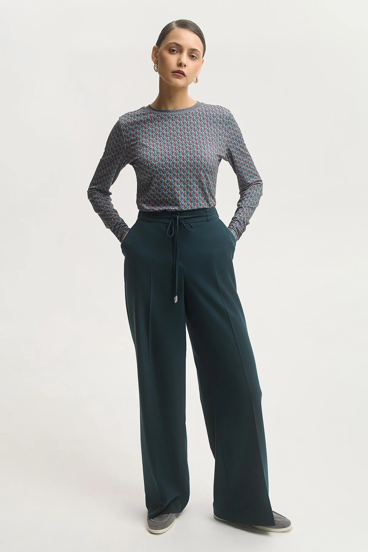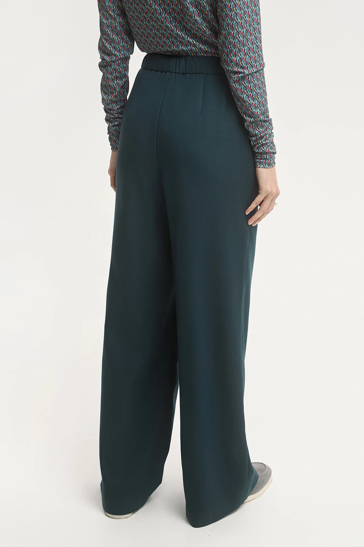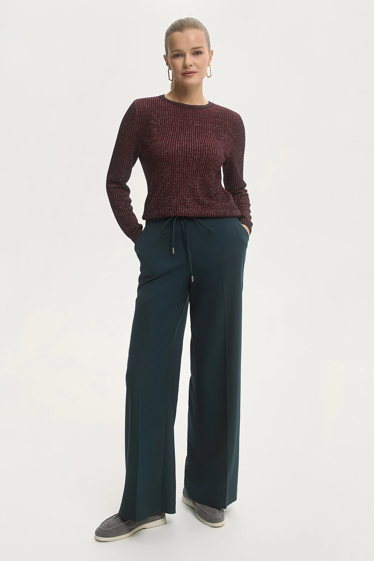 "Элегантные широкие брюки подчёркивают стройность ног. Ткань с содержанием вискозы гигроскопична и подходит для образов в офис.