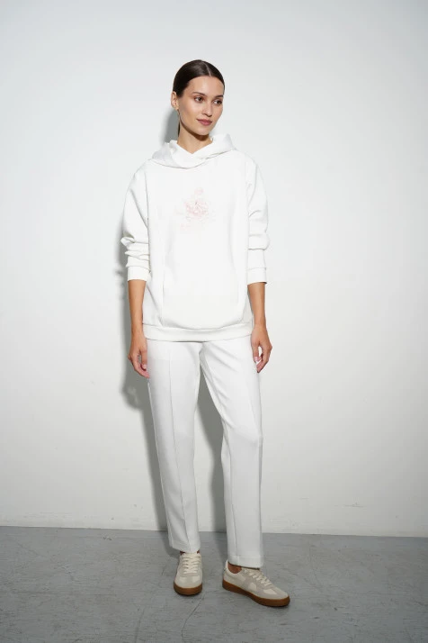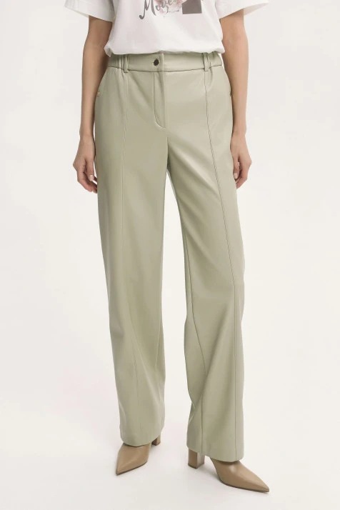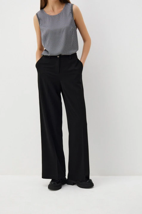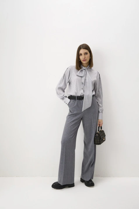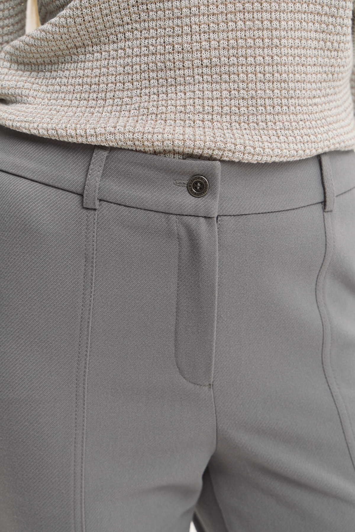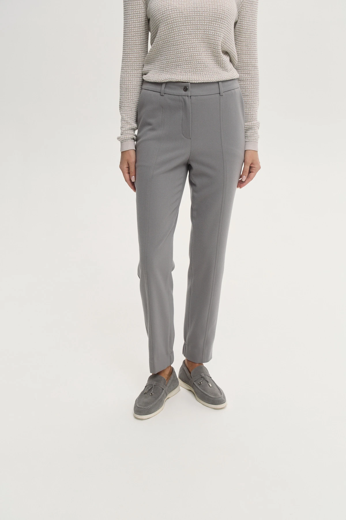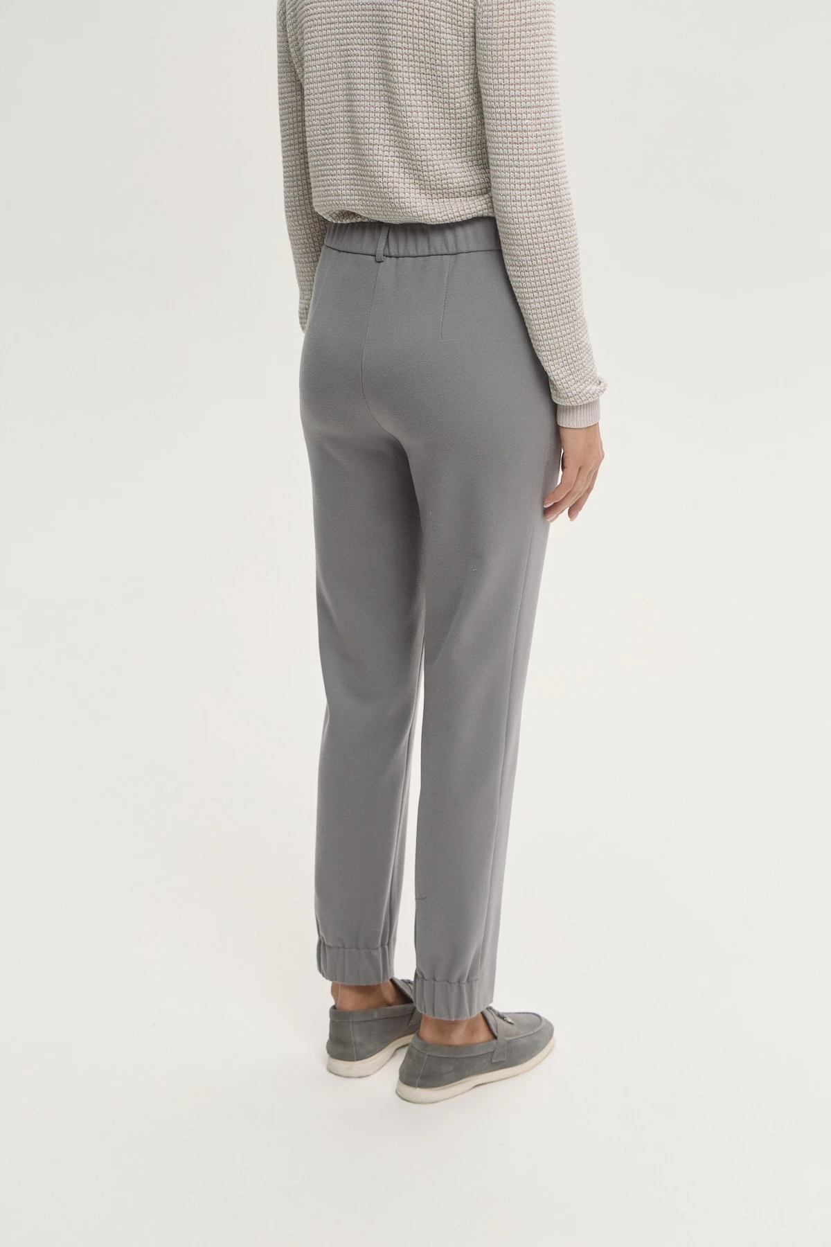 Зауженный крой с отстрочными стрелками визуально подчеркивает стройность ног. Средняя посадка брюк и эластичная лента сзади по поясу и низу брючин обеспечивают комфорт при носке в течение всего дня. Универсальный серый цвет легко сочетается с яркими, пастельными и нейтральными оттенками. Плотный, но мягкий материал держит форму и подходит как для офиса, так и для повседневных образов. Модель дополнена комфортными карманами.