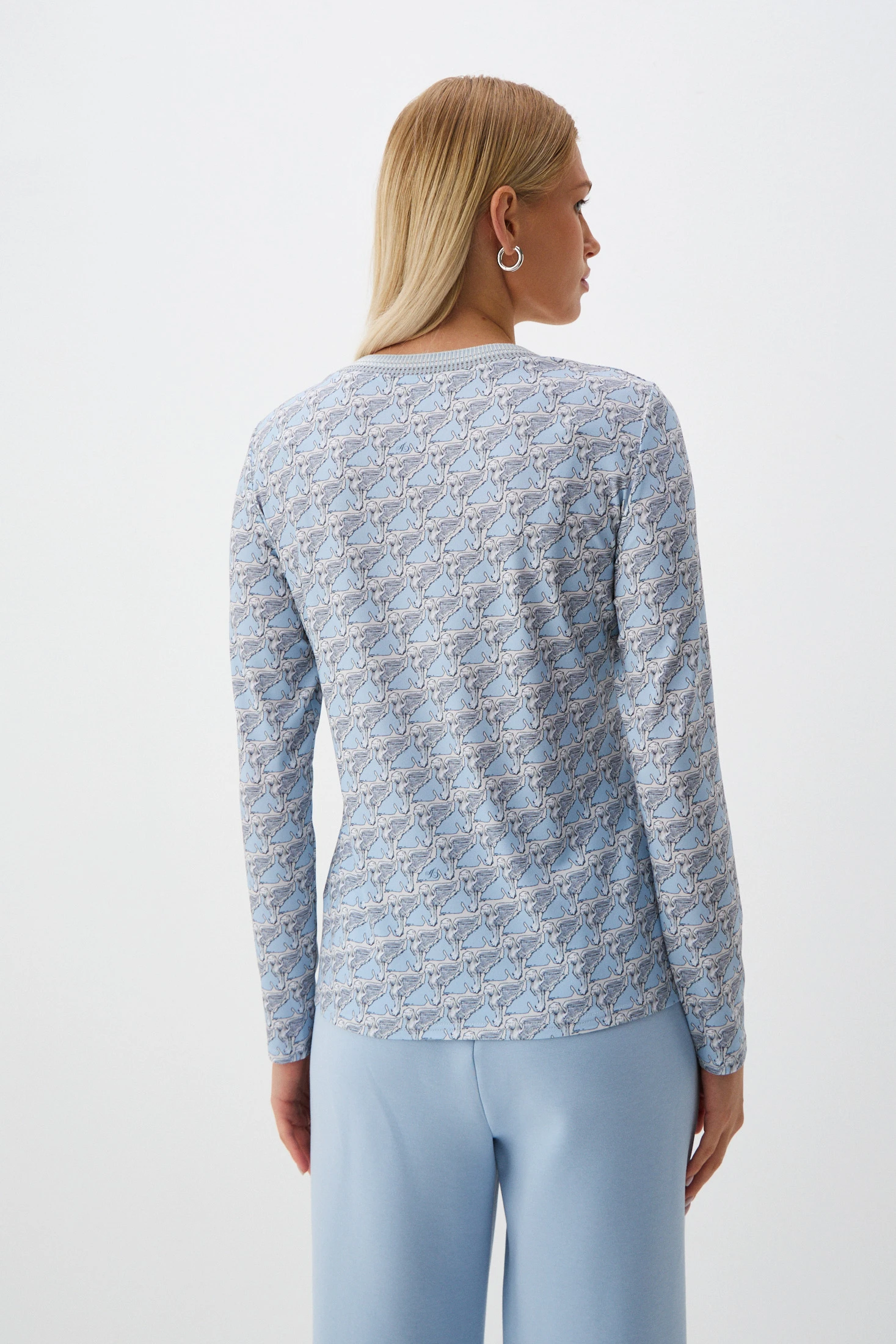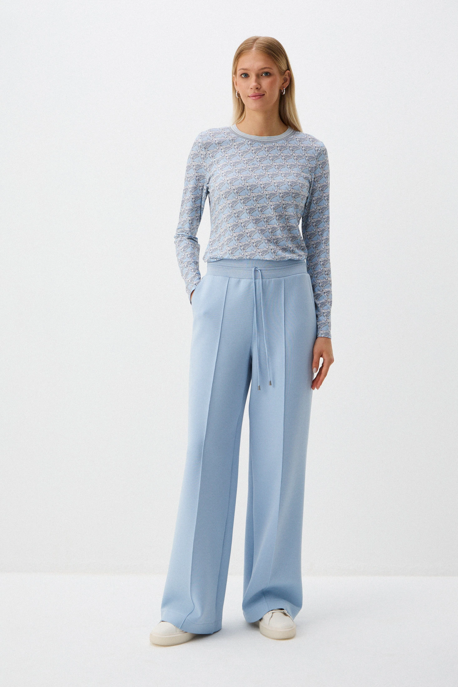 Джемпер из эластичного бифлекса с авторским паттерном – удобная и неприхотливая в уходе модель. Удобный базовый джемпер с ноткой романтики, дарящий прекрасное настроение. Эластичный бифлекс обеспечивает отличную посадку, адаптируясь к форме тела, прост в уходе, сохраняет свой цвет и форму даже после многочисленных стирок. Свободный крой джемпера придает легкость и подходит для повседневной носки.