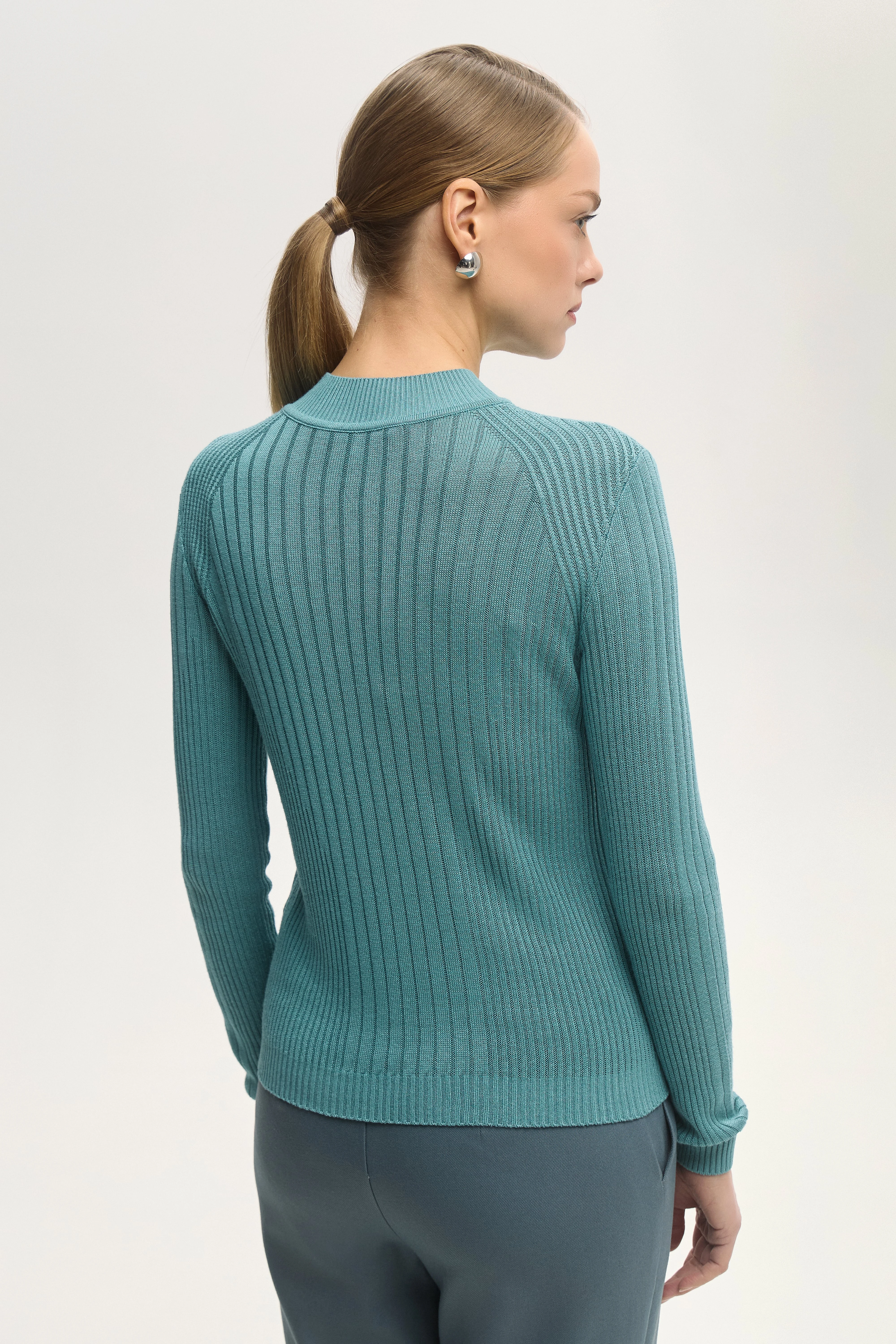 Прилегающий силуэт и аккуратная посадка джемпера комфортны в повседневной носке и легко вписываются в базовый гардероб. Разнонаправленная вязка рубчиком визуально подчёркивает стройность фигуры. 100% вискоза тактильно приятна и гигроскопична. Подходит для многослойных комплектов — легко надевается под жакет, жилет или куртку.