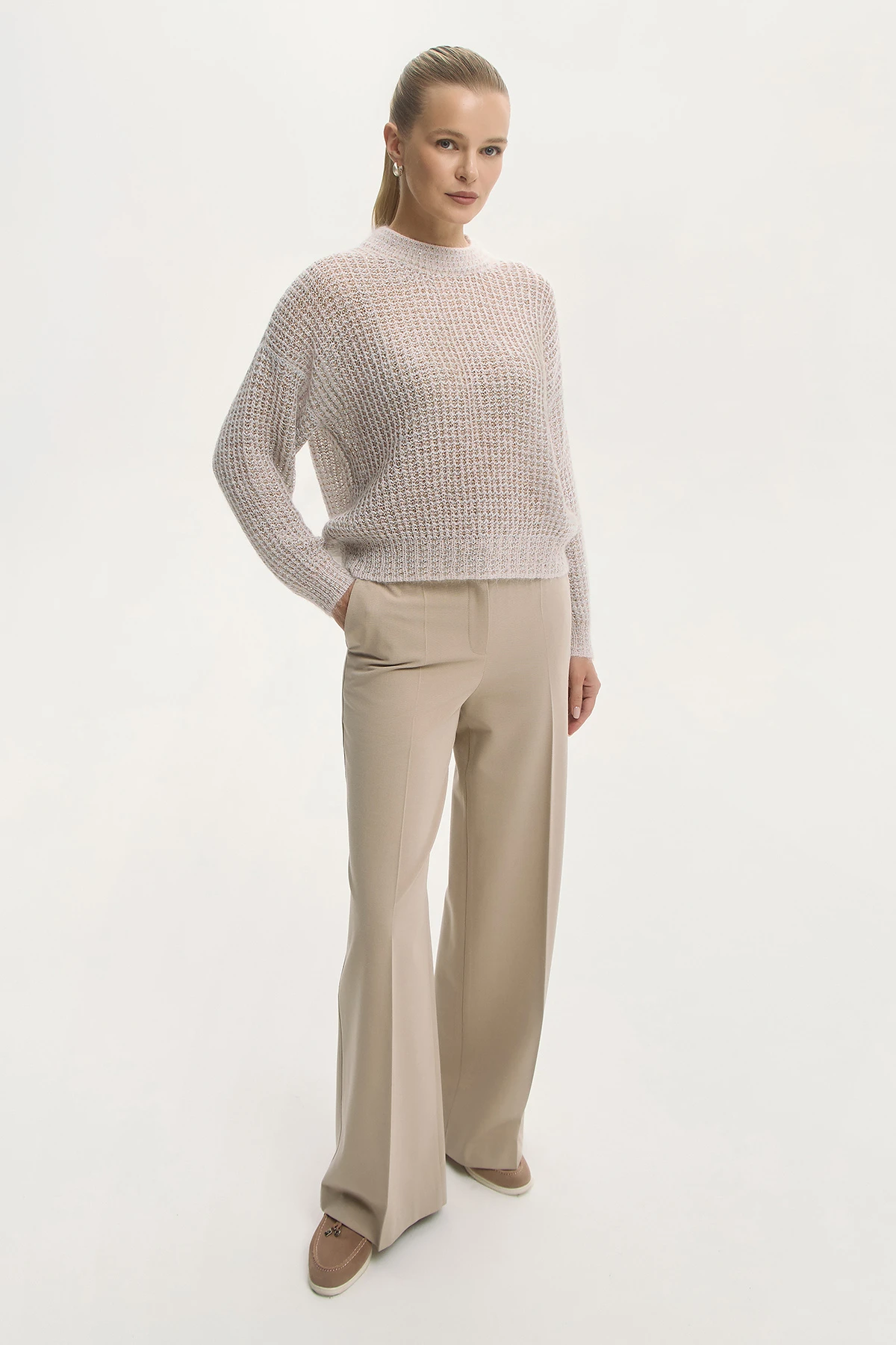 "Песочный оттенок универсален для базового и капсульного гардероба. Состав с мохером Super Kid и шерстью — тёплый и комфортный в носке.