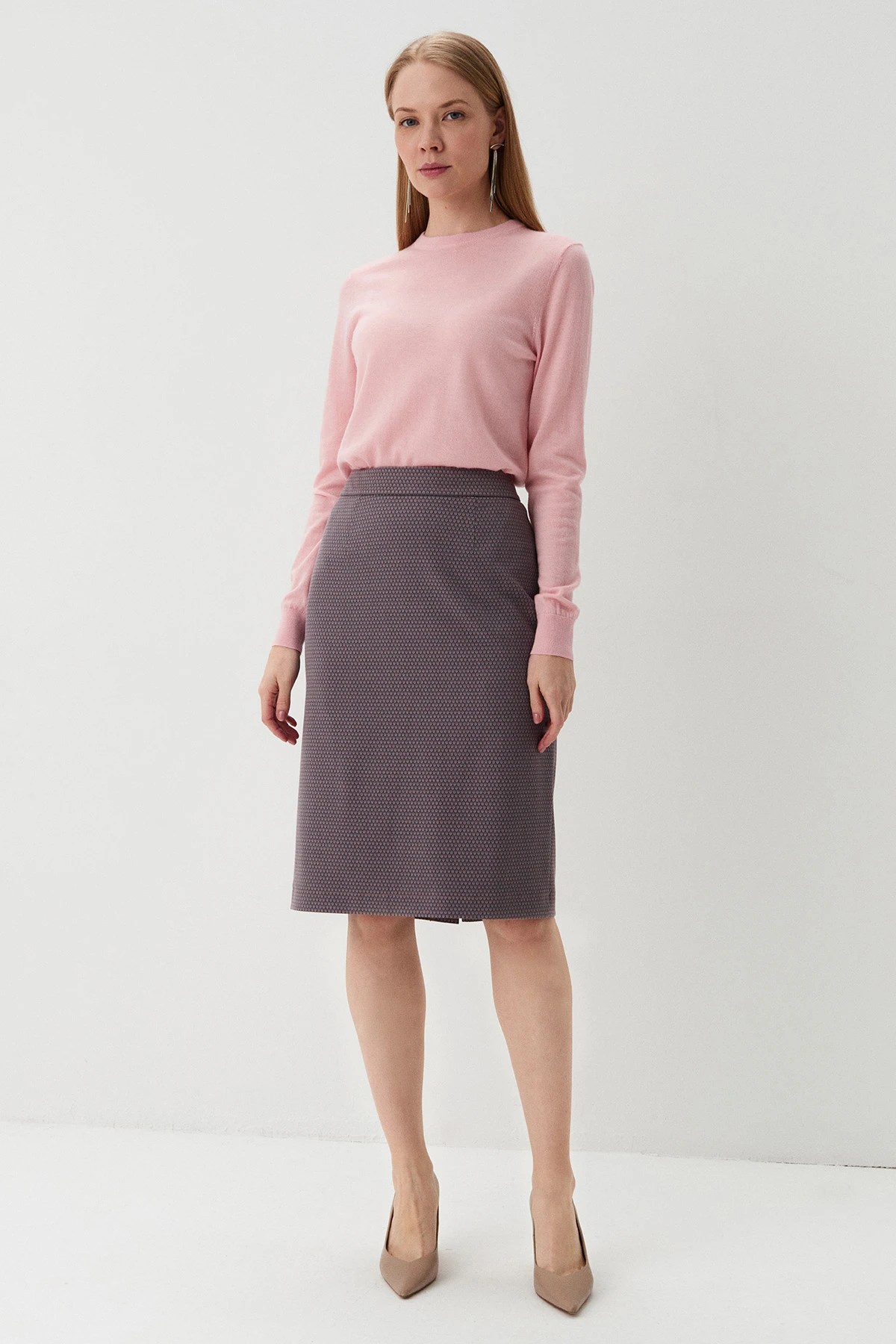 Ткань: Монохромный джемпер в оттенке «цвет шиповника» из вязаного трикотажа восхитительного состава – нежный кашемир и согревающая шерсть.