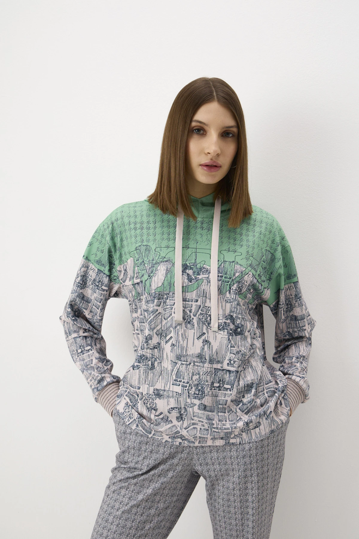 Худи с авторским принтом, посвящённым великолепному Санкт-Петербургу, станет изюминкой Вашего гардероба. Плотный трикотаж на основе хлопка с добавлением района гигроскопичен и комфортен в носке. Ткань имеет высокие практичные свойства: несминаемость, устойчивость принта и эластичность. Расслабленная модель свободного кроя с капюшоном прекрасно звучит в стильных многослойных ансамблях – доба¬вив классическое пальто, объёмный бом¬бер или косуху, можно создать актуальный аутфит.