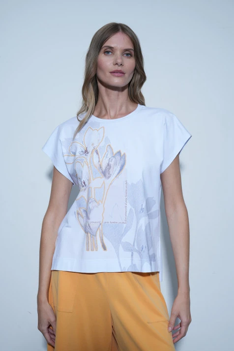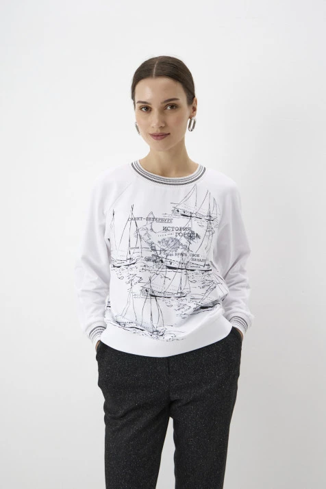 Монохромный лонгслив прилегающего силуэта из тактильно приятной, эластичной ткани. Интересная деталь – легенда, напечатанная на спинке с изнаночной стороны. Рукава втачные полной длины.