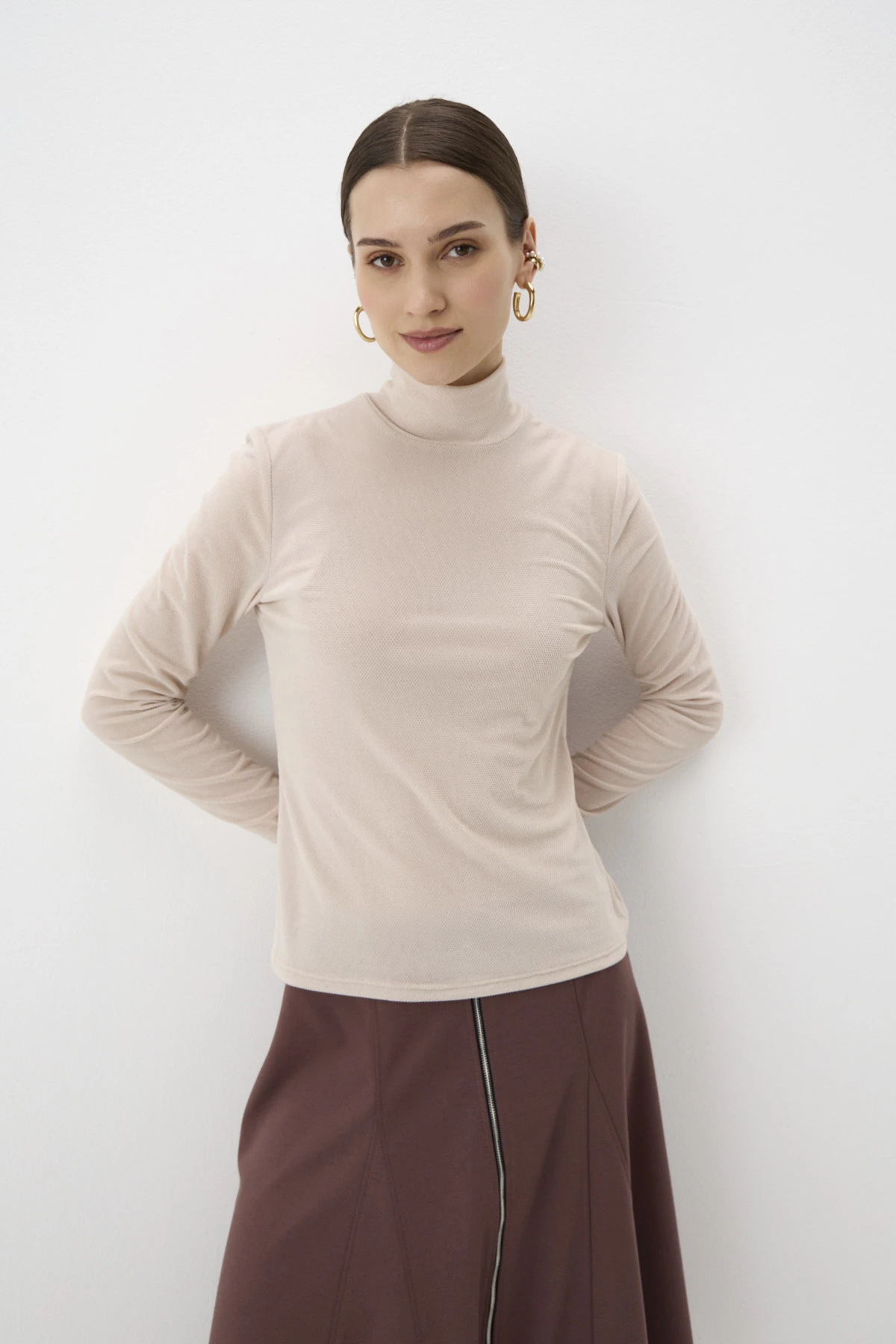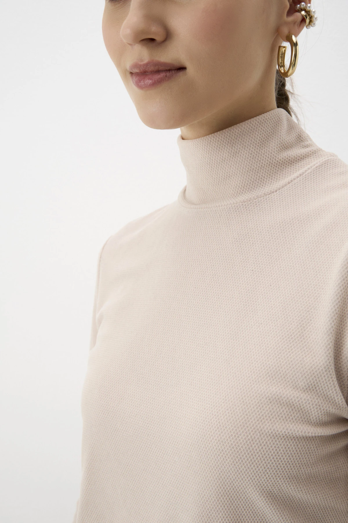 Водолазка – прекрасная альтернатива рубашкам и свитшотам, а также идеальная база для создания многослойных образов. Монохромная водолазка в пудровом оттенке из тактильно приятной эластичной сетки с бархатистой фактурой станет элегантной базой Вашего гардероба. Перед и спинка дополнены вторым слоем сетки для непрозрачности.