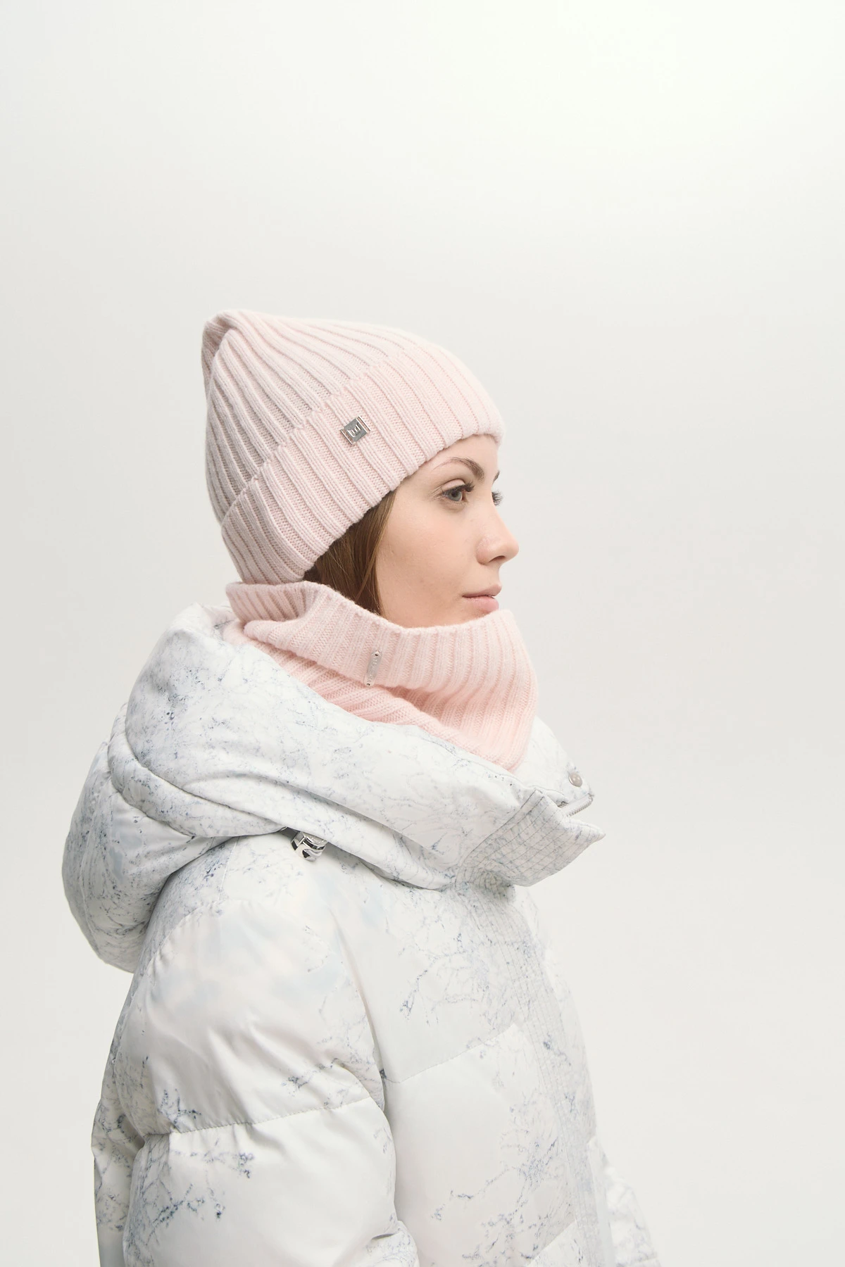 Трикотажная шапка в нежном розовом оттенке с мягкой фактурой и комфортной посадкой. Объёмная эластичная вязка создаёт уют и надёжно защищает от холода. Светлый цвет подчёркивает свежесть кожи и легко сочетается с верхней одеждой в пастельной гамме. Брендированная фурнитура добавляет деликатный акцент.