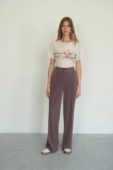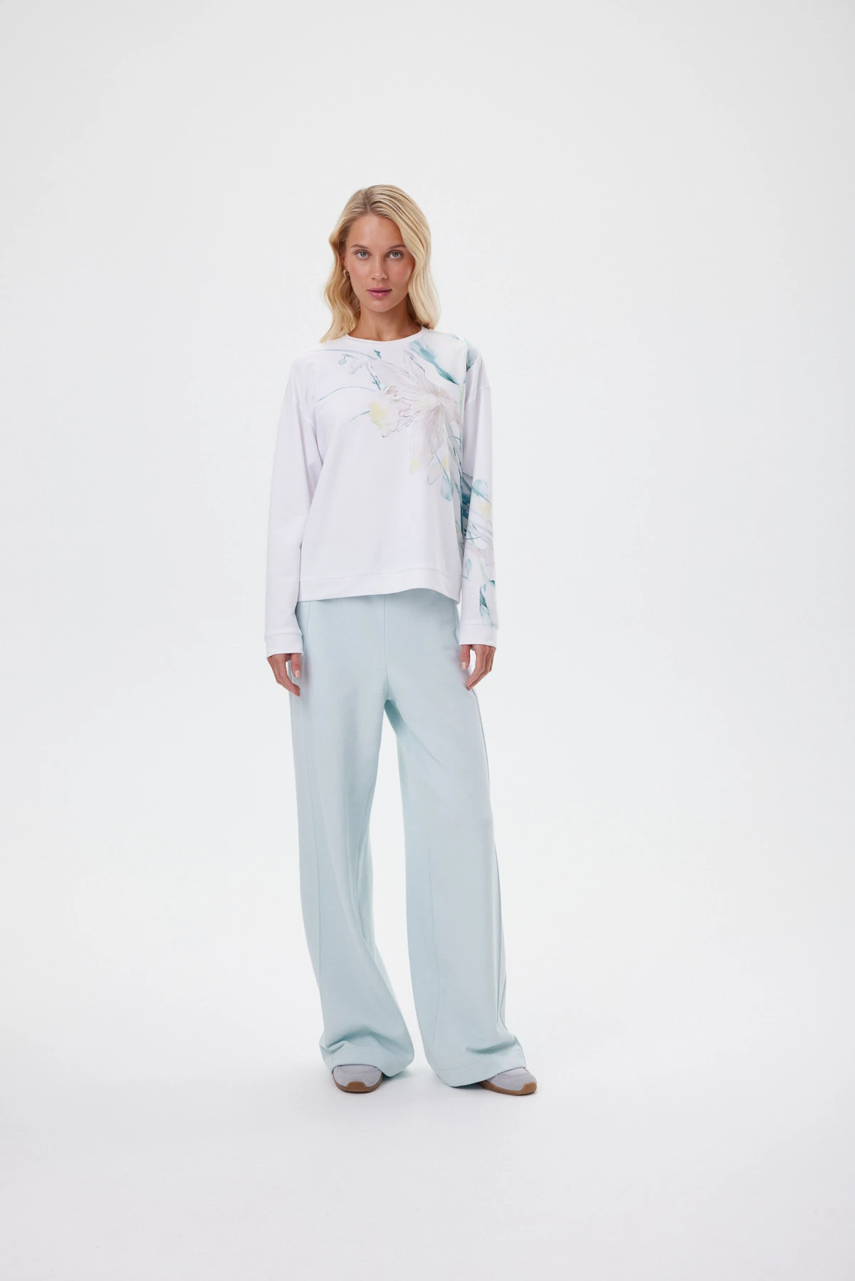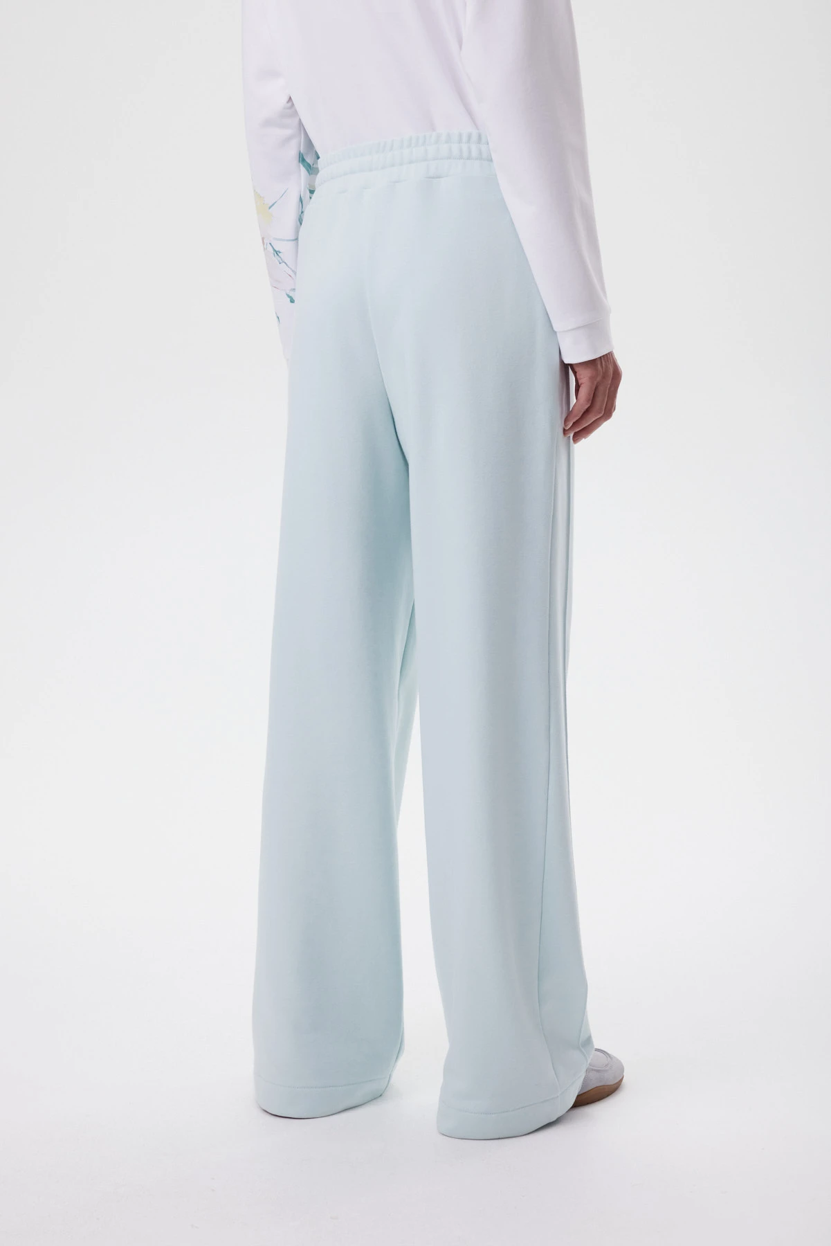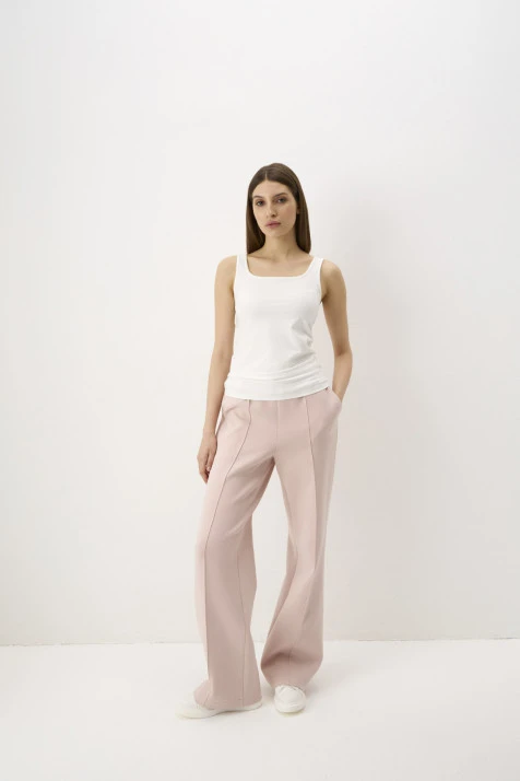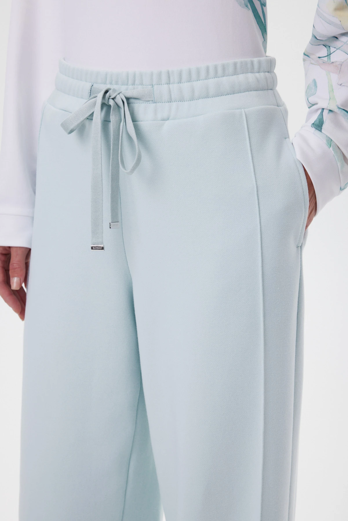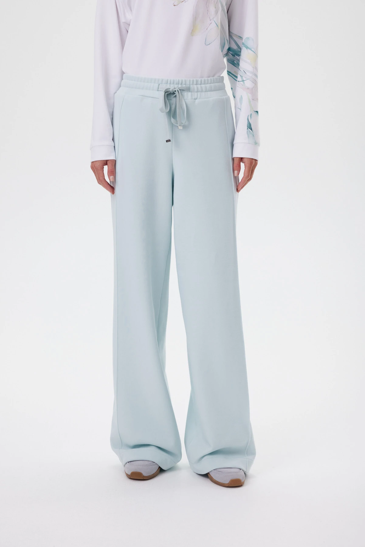 Брюки в нежном мятном оттенке задуманы как пара к худи «Первоцветы», но подойдут и к другим пастельным и ярким верхам. Это мягкая спортивная классика, которая выглядит элегантно и собранно. Широкая струящаяся форма выстраивает ровную вертикаль, а застроченные «стрелки» на передних половинках создают имитацию лампасов — визуально вытягивают силуэт и делают ноги длиннее. Премиальный футер приятен к телу и практичен в носке: хлопковая основа отвечает за комфорт, полиэстер — за стабильность формы и износостойкость. Боковые карманы аккуратно встроены в швы и не утяжеляют линию, пояс с отстроченной эластичной бейкой держит посадку без давления, а вязаный шнур с металлическими наконечниками добавляет аккуратный акцент. Всё в этой модели продумано до мелочей.