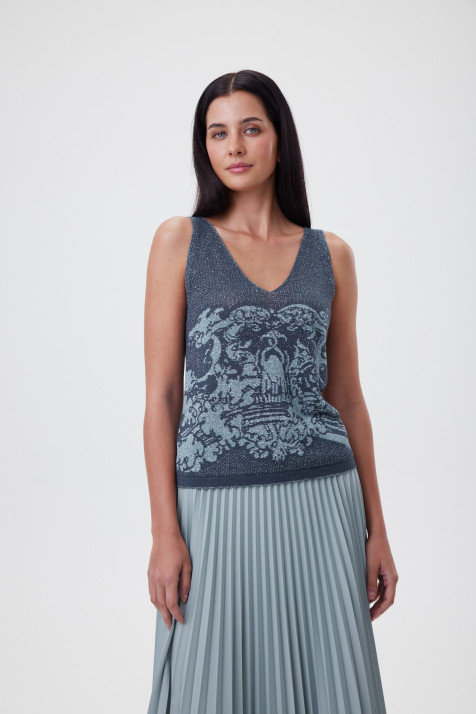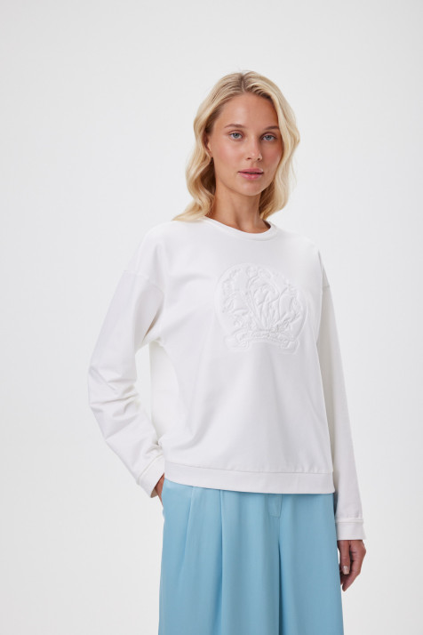 Объёмный джемпер с выразительным узором «ромб» — современная интерпретация ручной вязки: крупные петли, лёгкий винтажный характер и воздушная структура, которая создаёт комфортный микроклимат и при этом держит форму. Чистый белоснежный оттенок подчёркивает рельеф переплетения, освежает лицо и легко вписывается в летние сочетания. Расслабленная посадка со спущенной линией плеча формирует мягкий силуэт, а широкие бейки по горловине и проймам задают аккуратную, качественную рамку. Хлопок и вискоза приятны к телу, помогают полотну не растягиваться и не терять рисунок — джемпер остаётся воздухопроницаемым и комфортным даже в тёплый сезон.