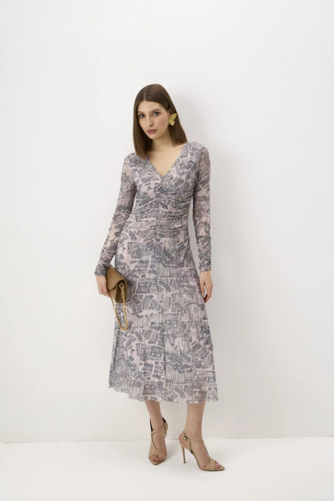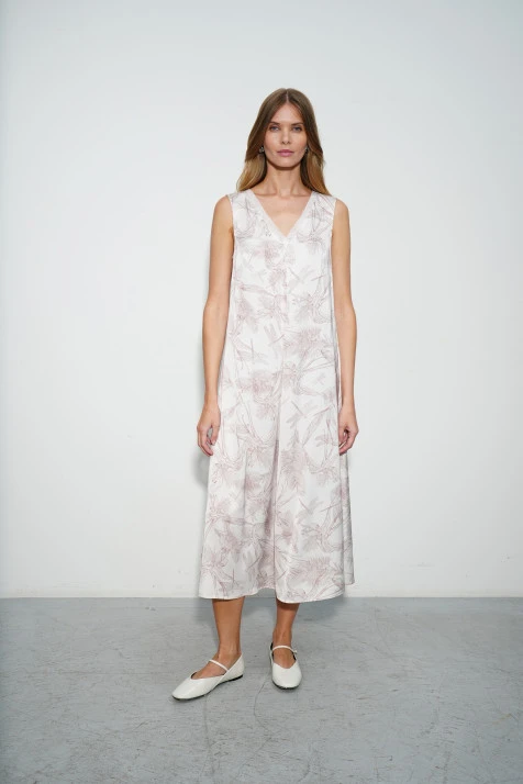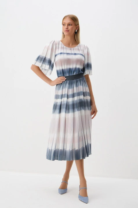 Платье сочетает в себе благородство ткани и лаконичность кроя: оно стилистически разнопланово и вписывается в ситуацию торжества и в casual-образы. Принт вносит нотку романтики и женственности. Обратите внимание – изнаночная сторона ткани выполнена из гигроскопичного и комфортного хлопка, а лицевая – из износостойкого полиэстера.
