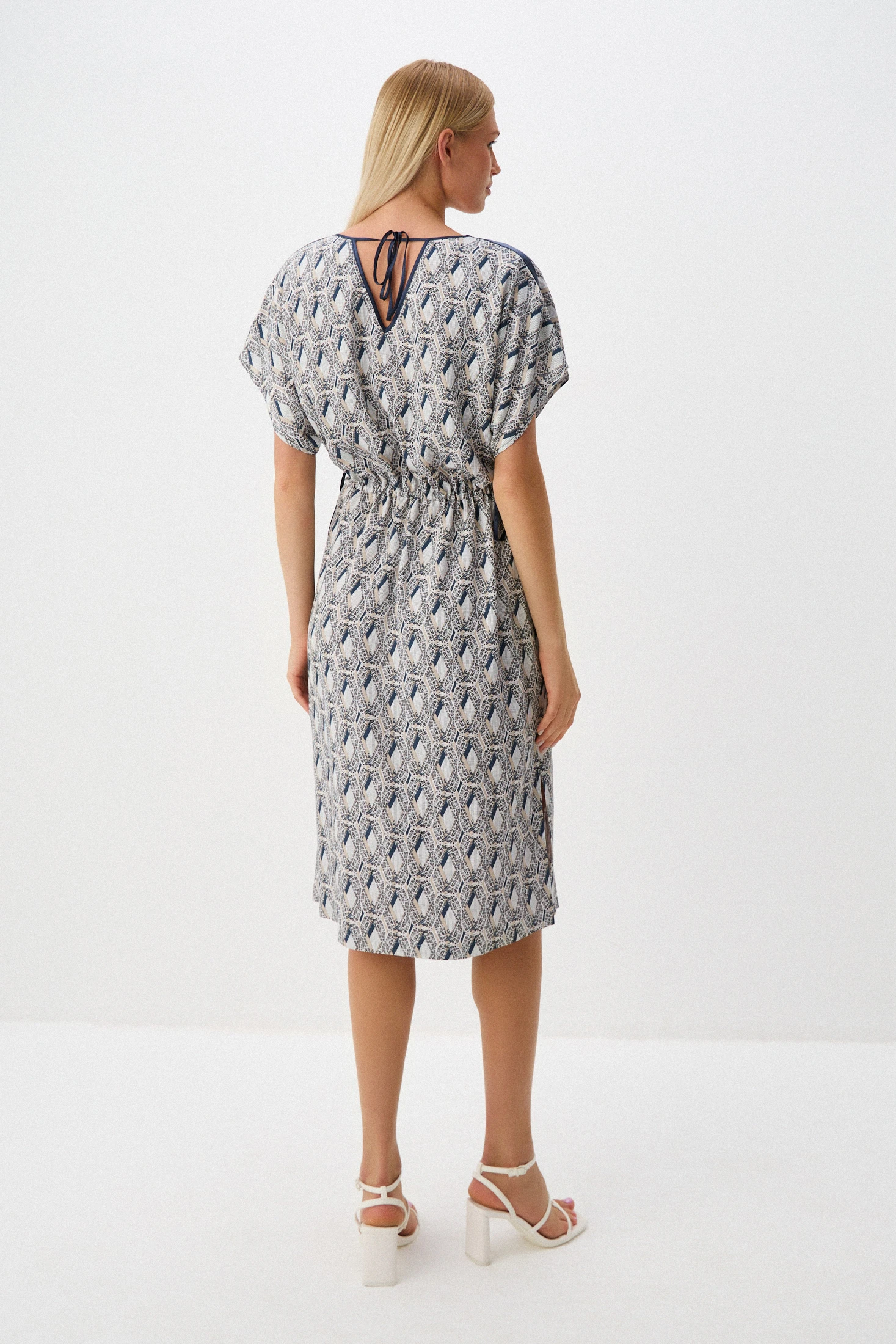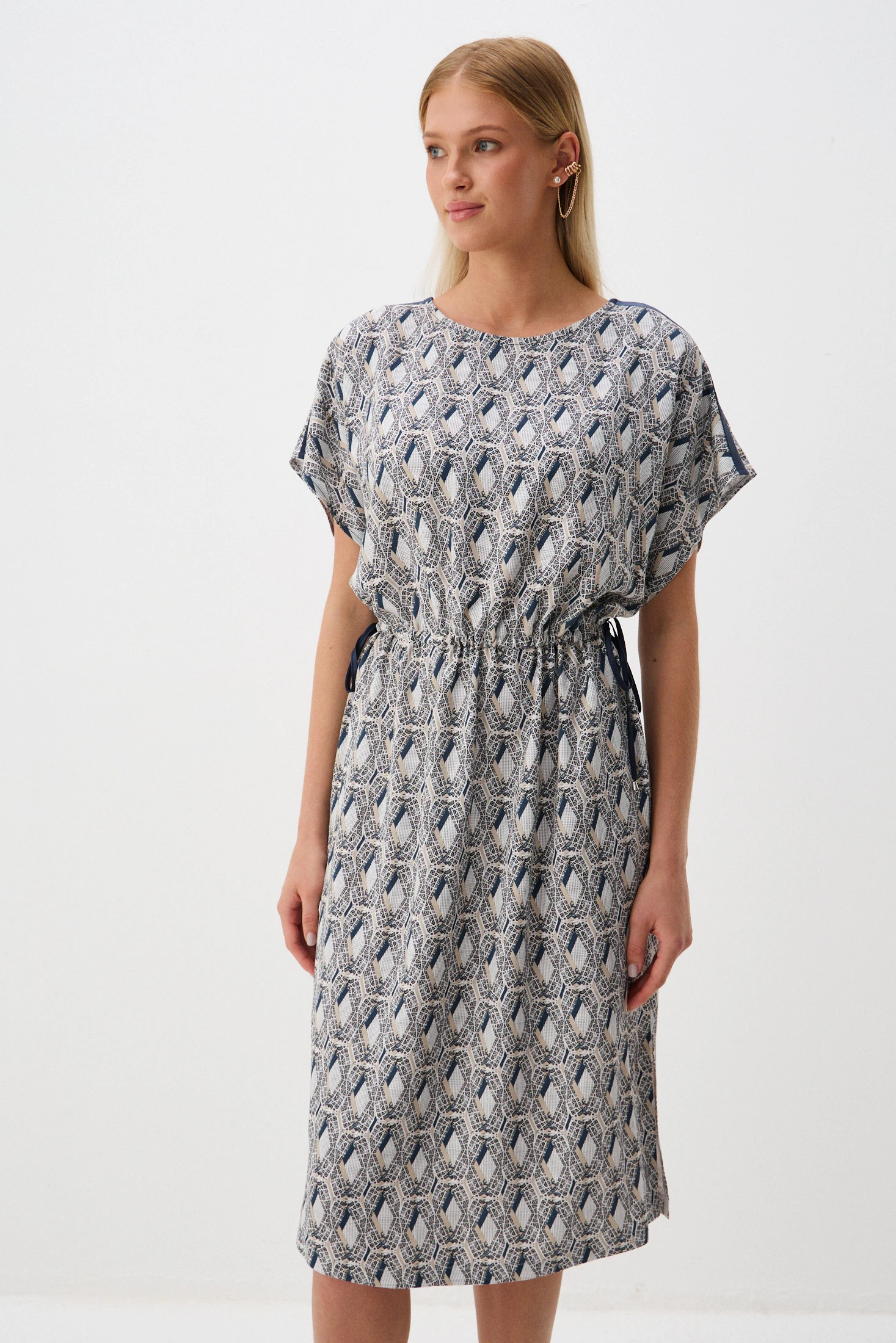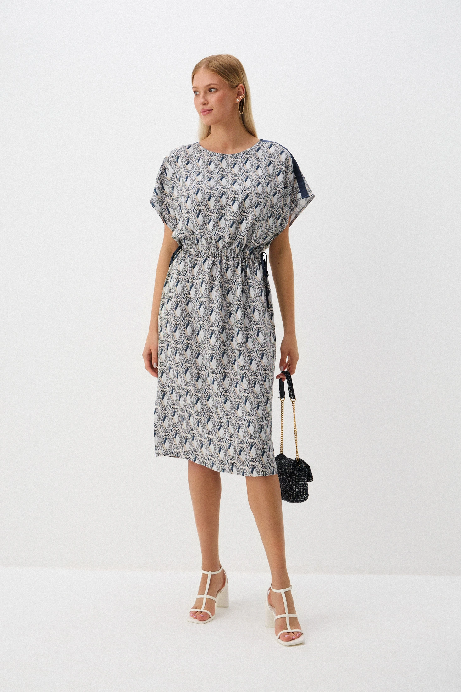 Платье из комфортной, гигроскопичной вискозы, обеспечивающей максимальный комфорт в жаркие летние дни. Прямой кройт создает элегантный силуэт, а разрезы в боковых швах обеспечивают свободу движения. По линии талии – кулиска со шнуром из ткани-компаньона, который позволяет регулировать степень прилегания. Классический фасон подходит для различных событий – от повседневных встреч до особых мероприятий.
