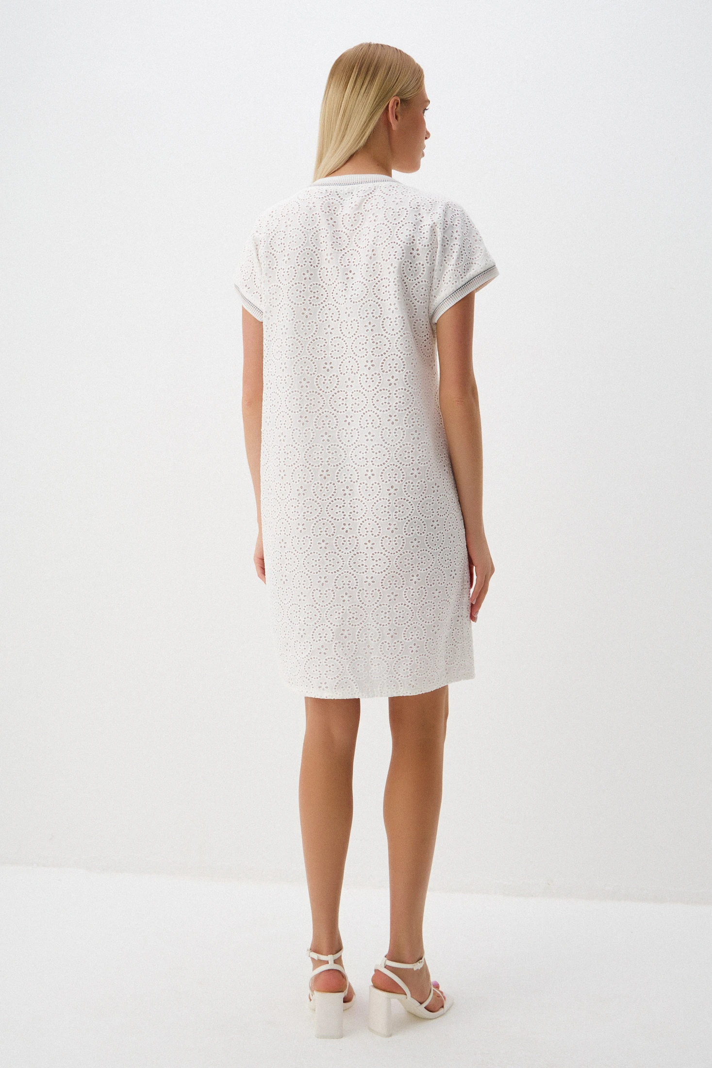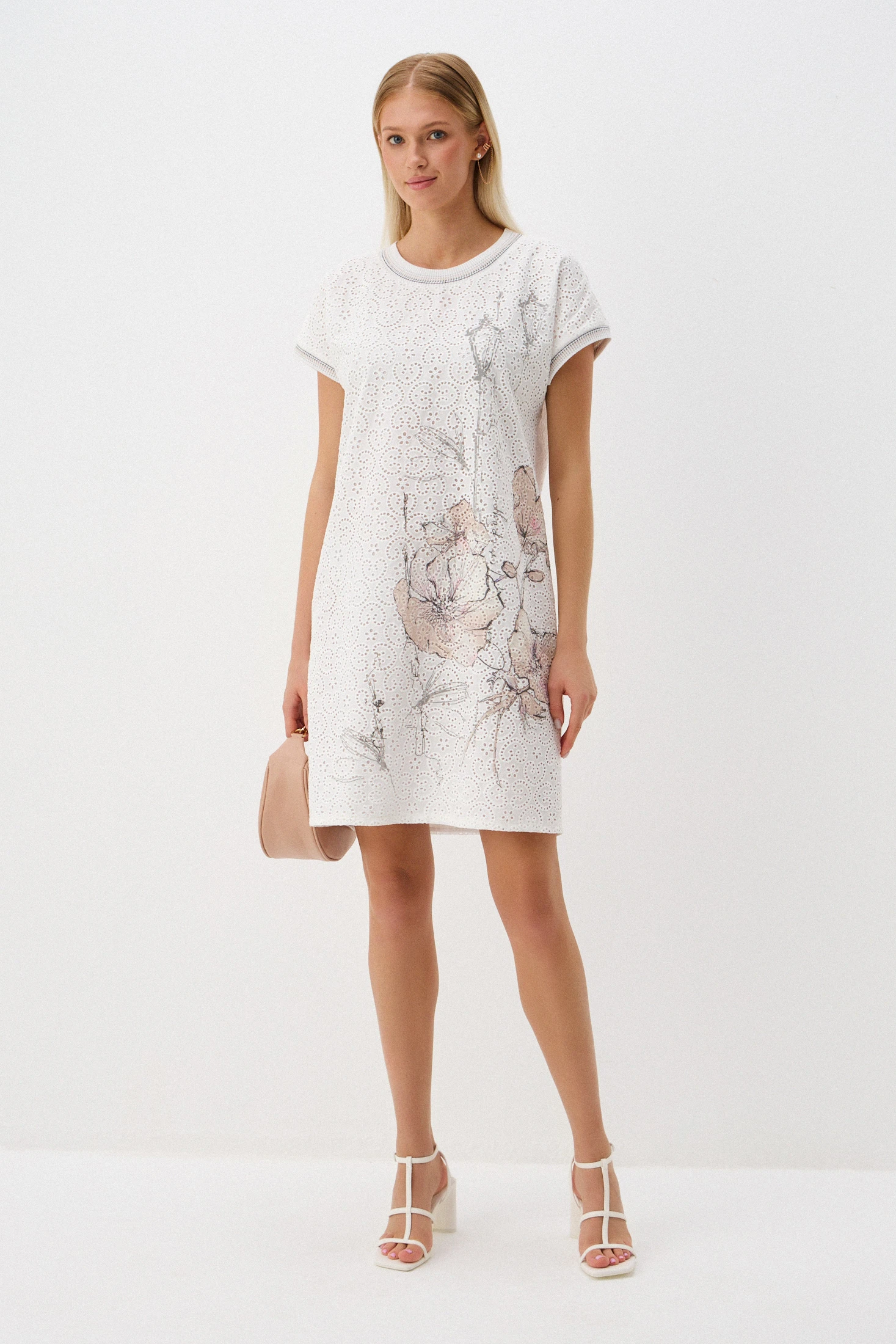 В платье «Воскресный полдень» ажур ткани переплетается с воздушным принтом и изящными линиями флорального рисунка. Шитьё – роскошная, романтическая и очень удобная ткань для летних образов. Платье имеет прямой силуэт, что создает лаконичный вид, подходящий для различных случаев. Комфорт в носке обеспечивает хлопковый подклад.