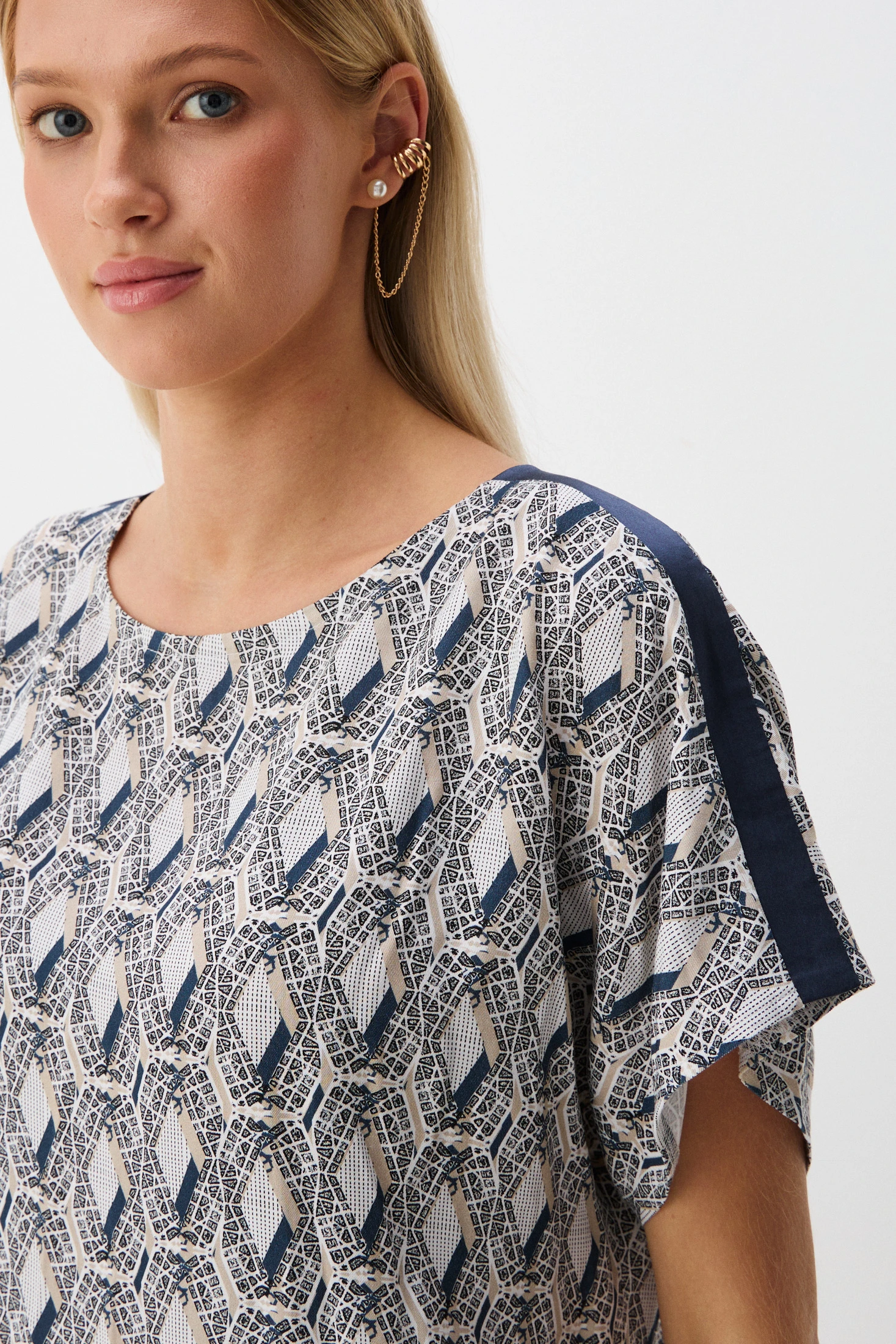 Абстрактный геометричный авторский принт в синих и песочных оттенках изображает перед нами Летний сад с высоты птичьего полёта: элементы карты, словно витраж, складываются в единую гармоничную картину. Геометрические фигуры, заключённые в ромбы в 3D-обрисовке – не что иное, как элементы карты Летнего сада.