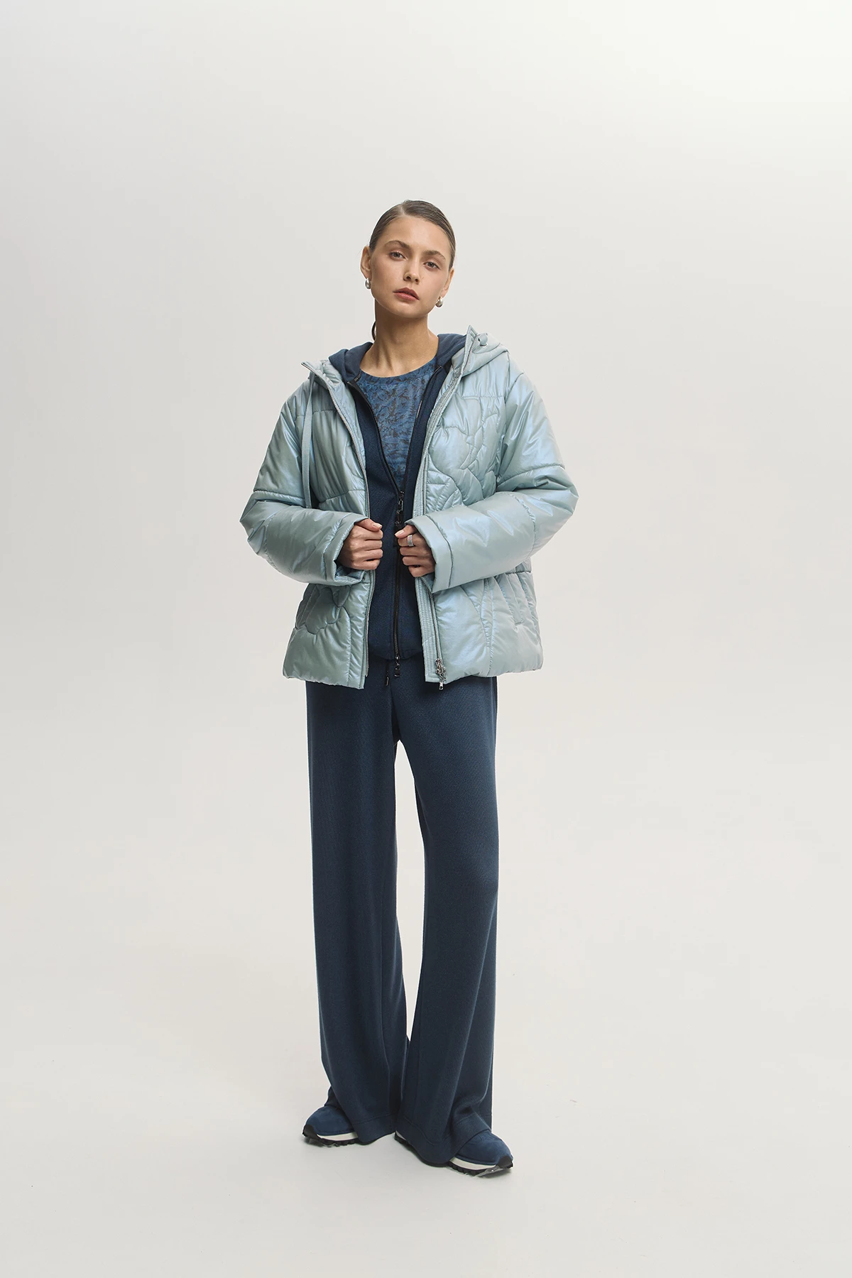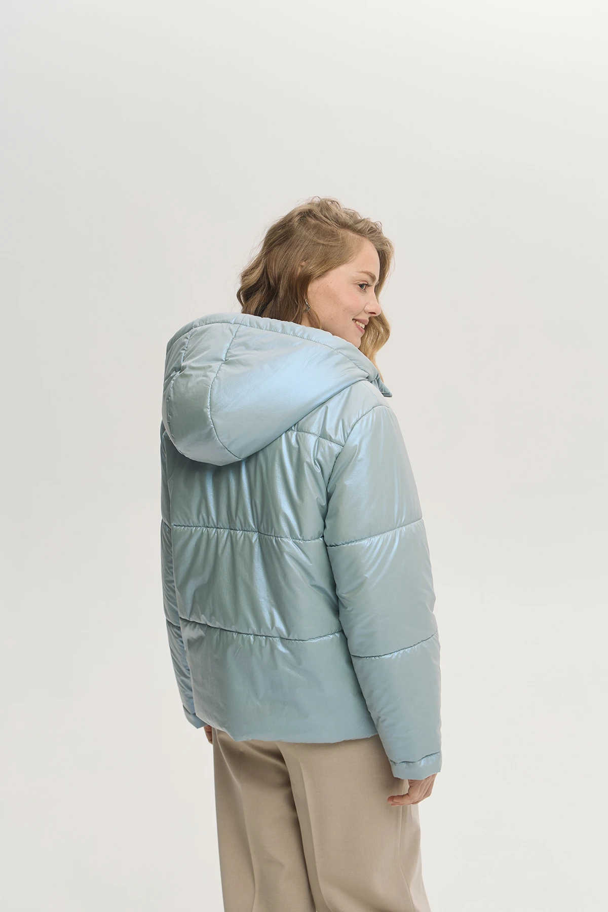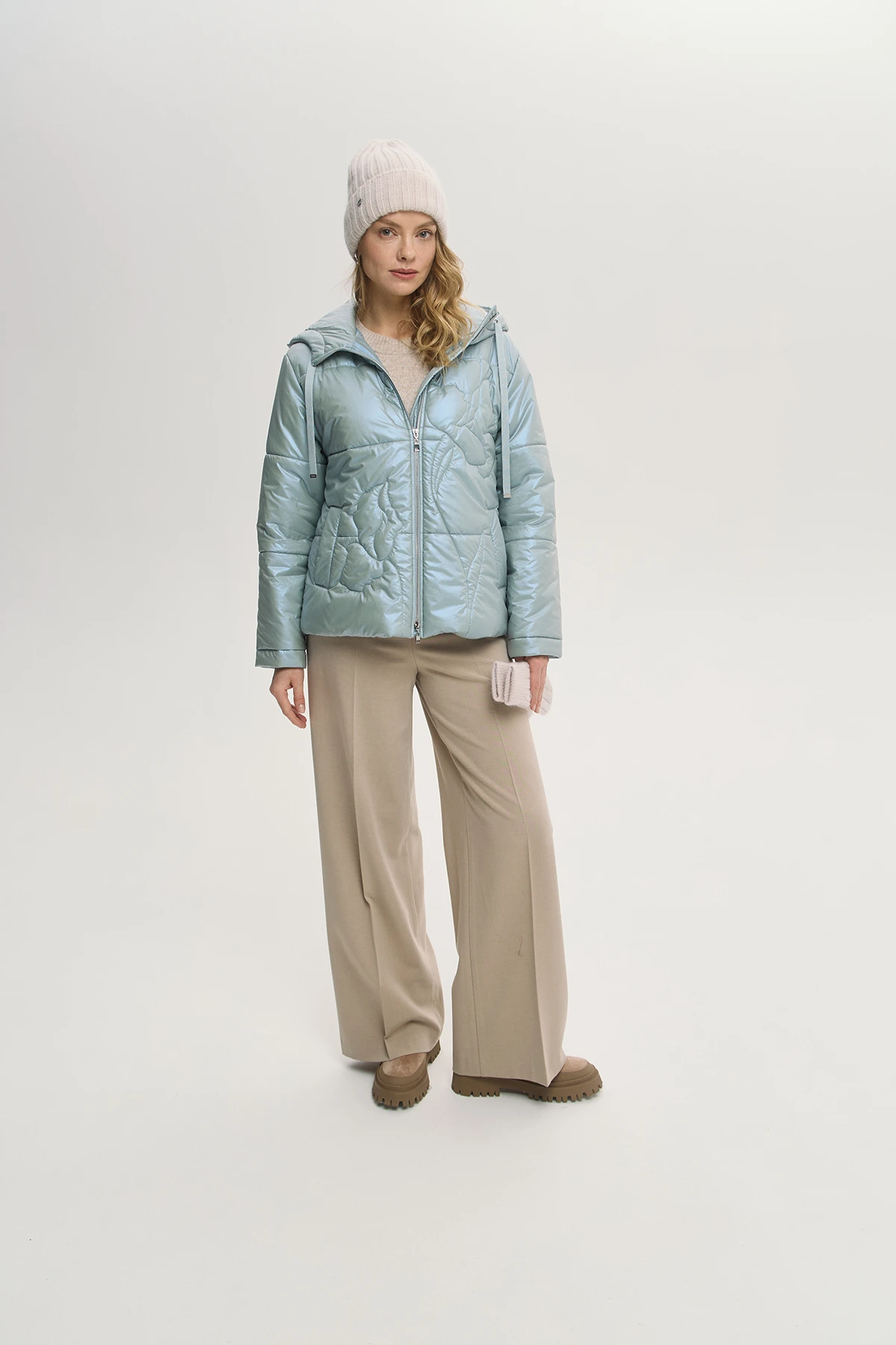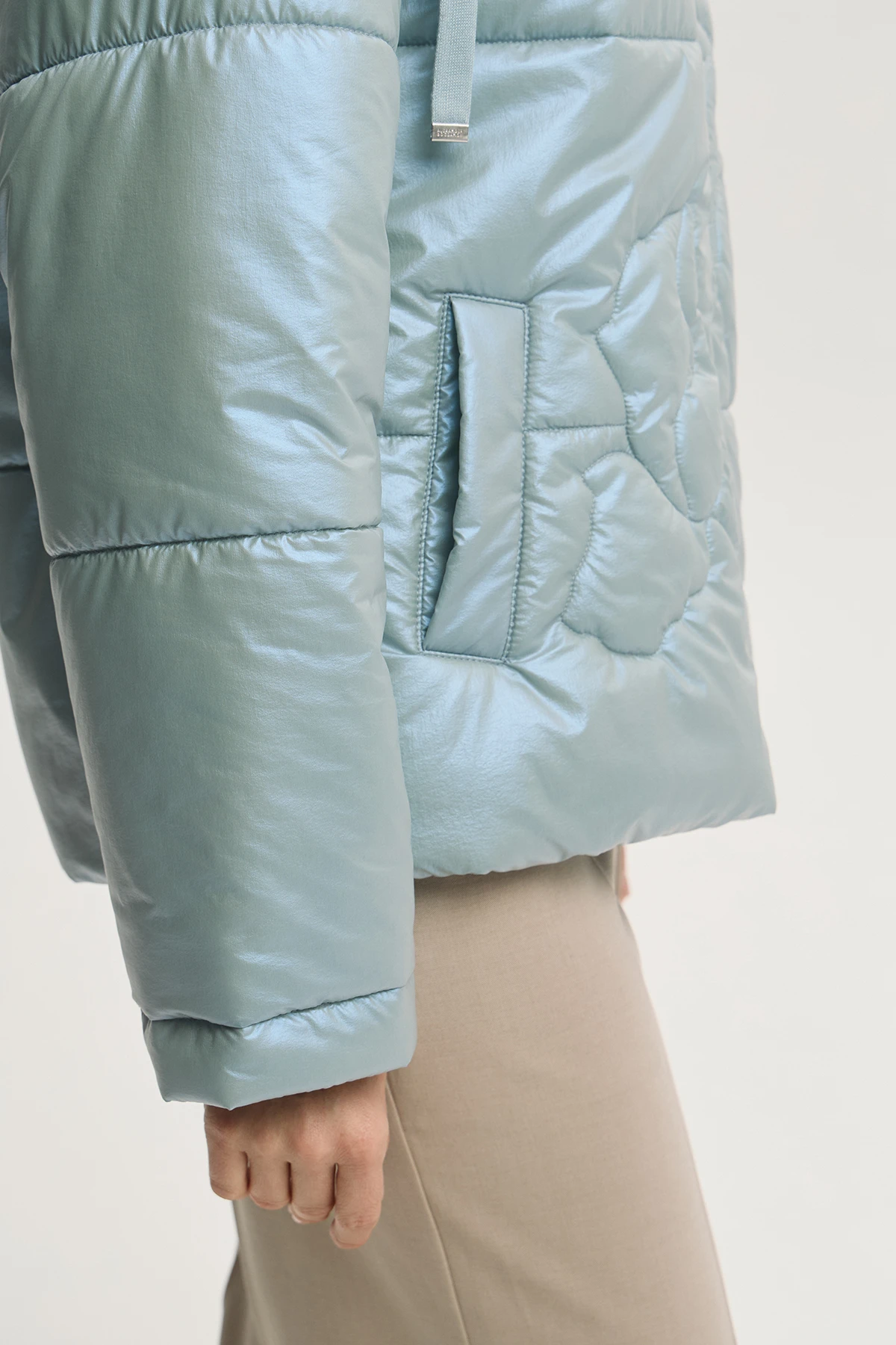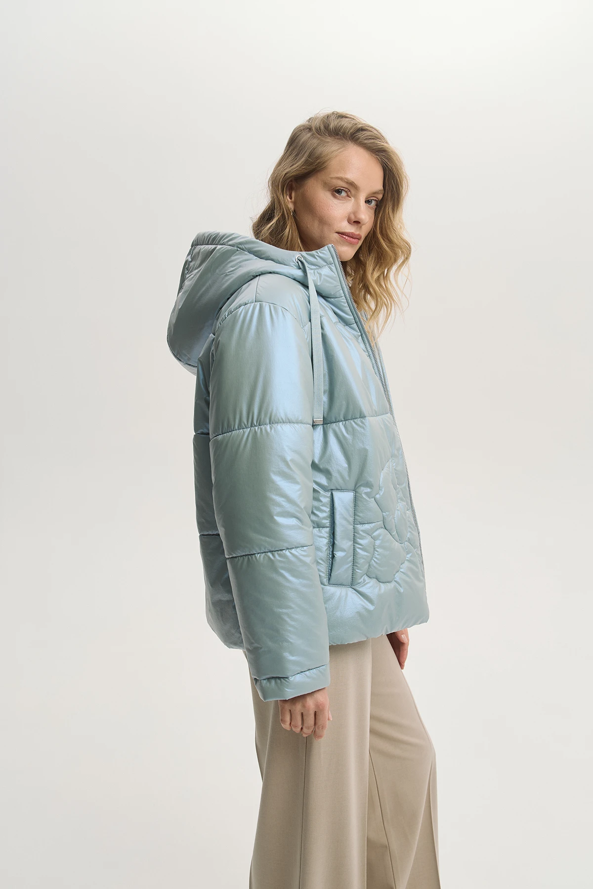 Современный крой куртки с минималистичной стёжкой в виде цветка придаёт дизайнерский характер модели. Ткань-шанжан с тонким металлизированным напылением «хамелеон» придаёт образу оригинальное мягкое сияние. Лёгкий и тёплый утеплитель Isosoft сохраняет тепло без утяжеления. Капюшон и застёжка на двустороннюю молнию — удобно в переменную погоду. Универсальная по фасону и движению, подходит для городской повседневности. Модель дополнена комфортными карманами.