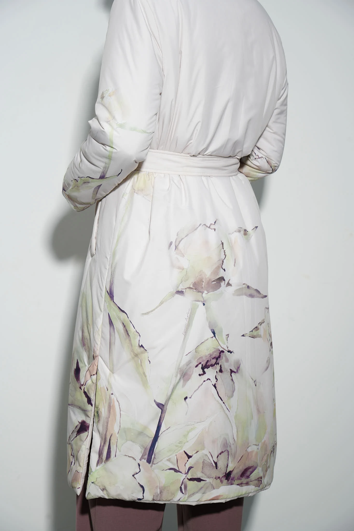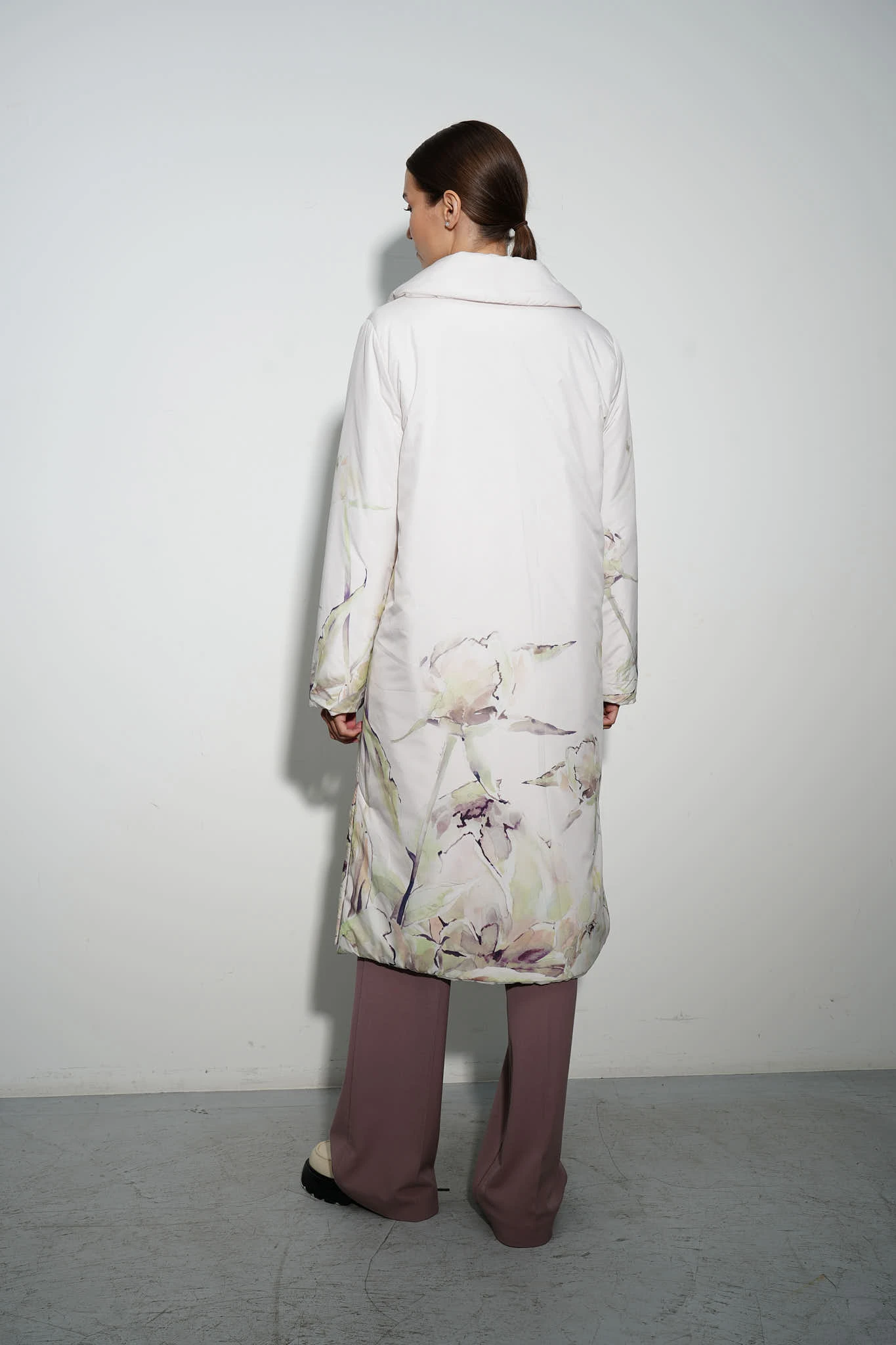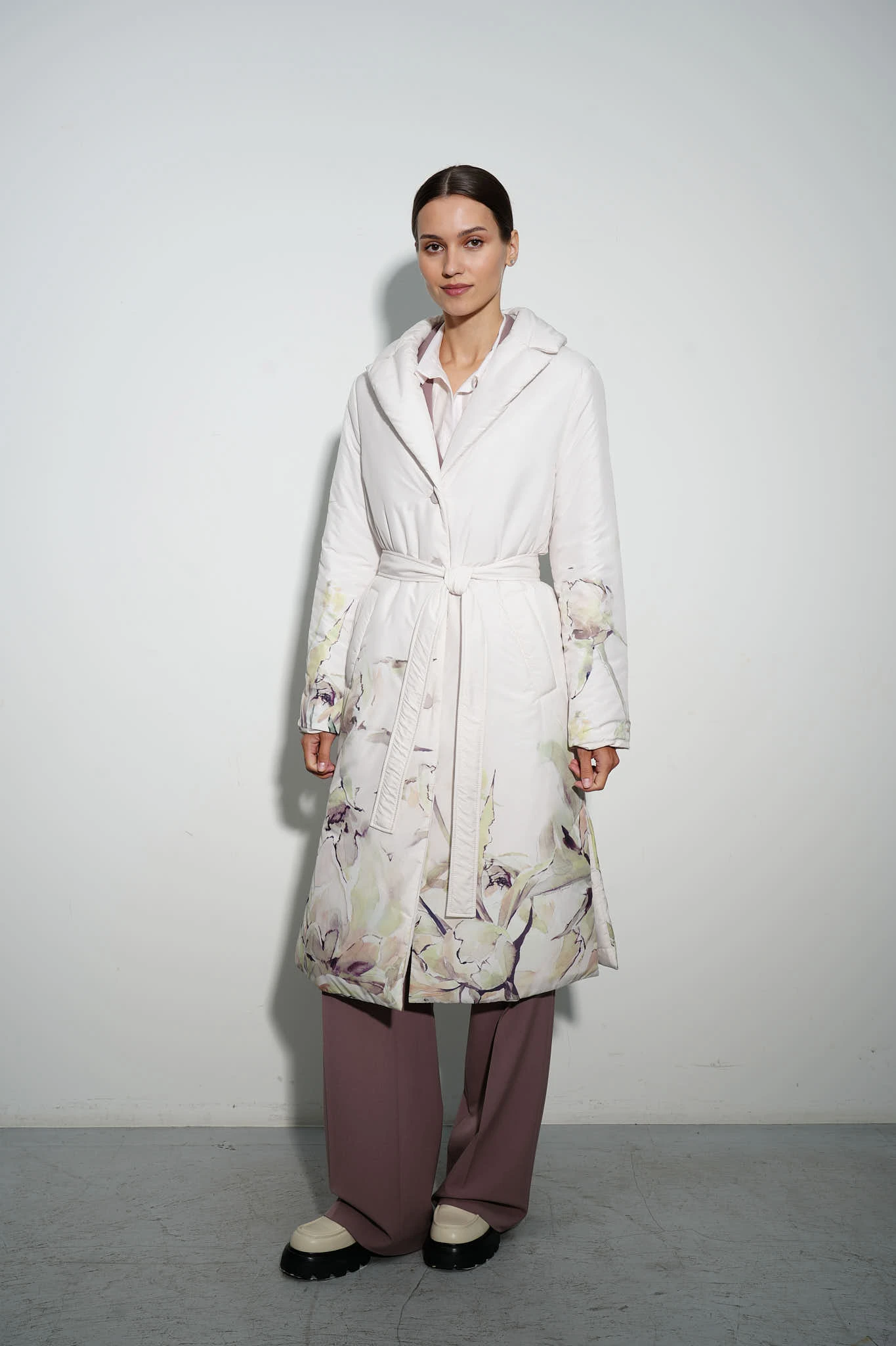 Дизайнерское однобортное пальто из практичного лаке в благородном оттенке «слоновая кость» с авторским принтом «Прикосновение нежности». Утеплитель Isosoft обеспечивает тепло и комфорт в любую погоду. Английский воротник с широкими лацканами добавляет нотку строгости романтичному пальто. Разрезы в боковых швах дарят свободу движений, а комфортные карманы добавляют функциональности.