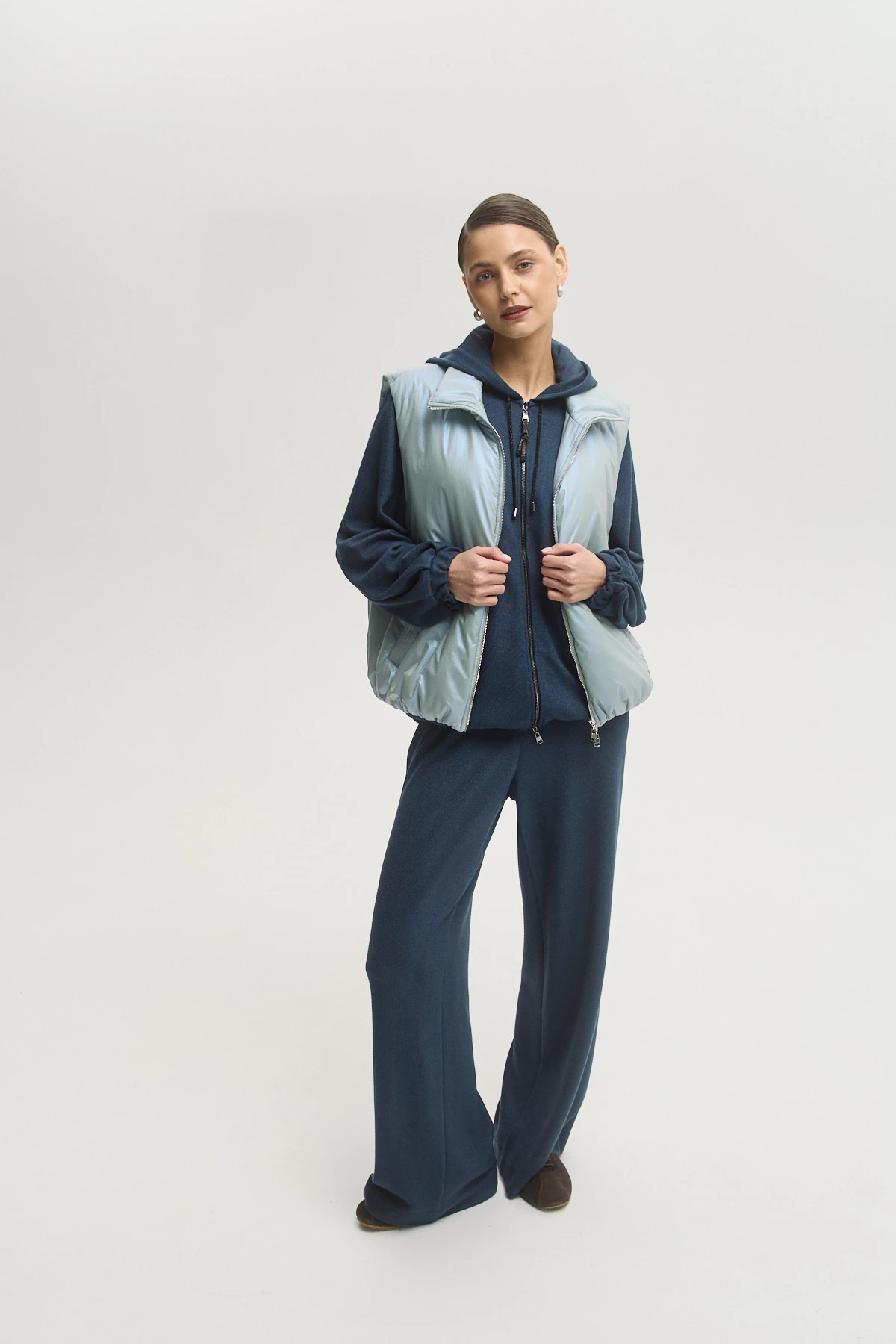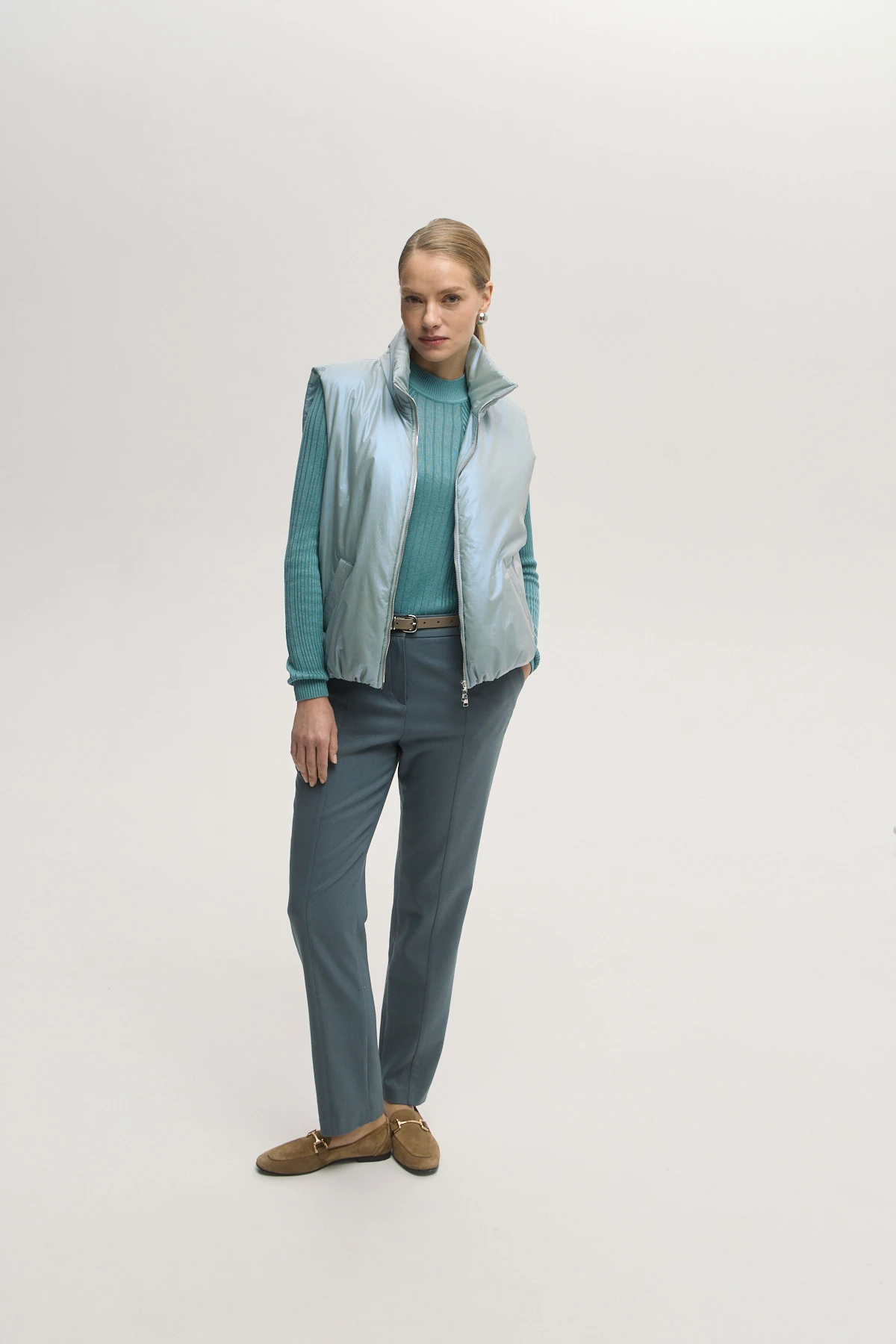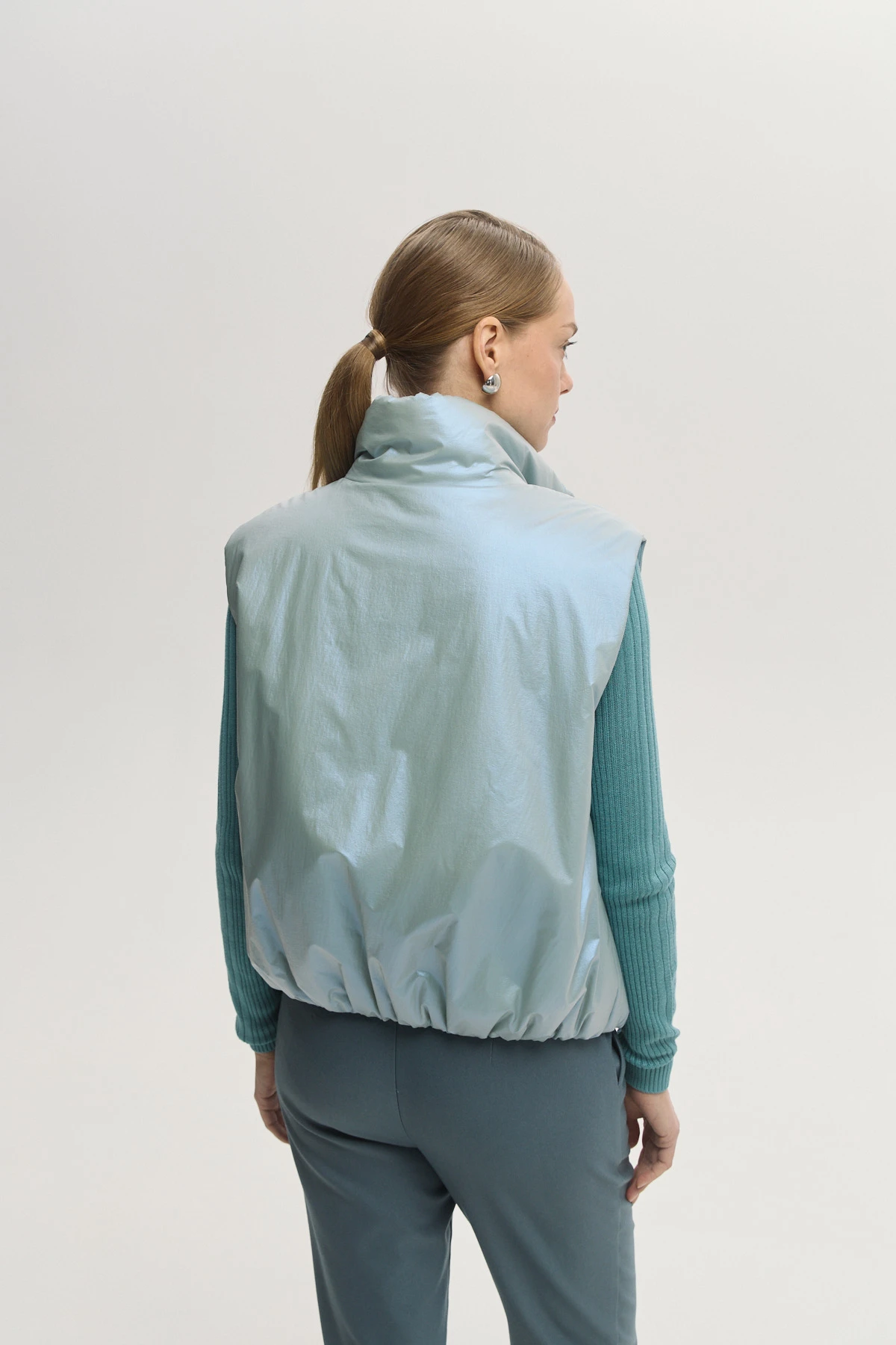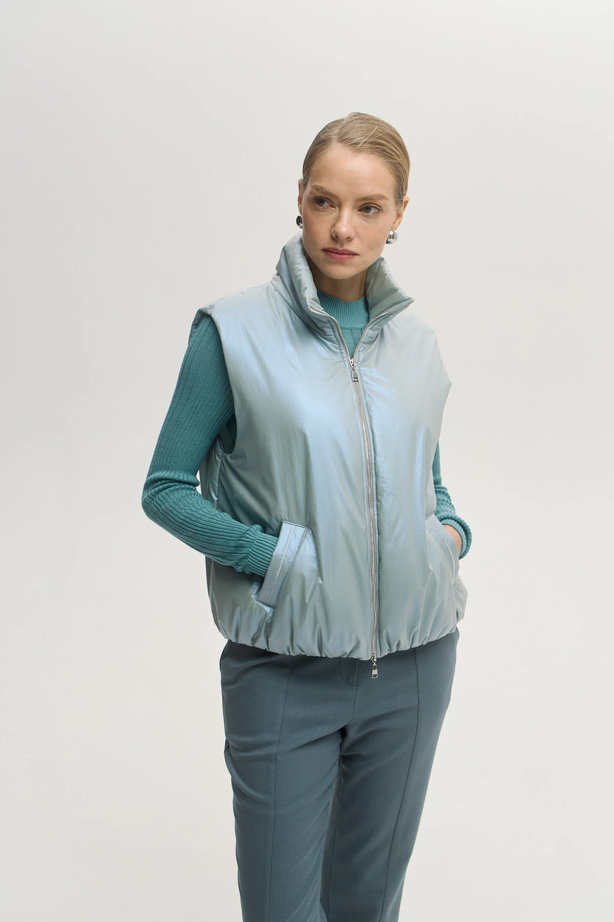 Современный объёмный жилет с широкой проймой — удобно надевать на свитер, джемпер или худи. Утеплитель Isosoft — лёгкий, тёплый, сохраняет форму и не утяжеляет. Ткань-шанжан с тонким металлизированным напылением «хамелеон» придаёт образу оригинальное мягкое сияние. Высокий воротник-стойка и ветрозащитный подклад защищают от ветра и обеспечивают комфорт. Универсальная модель на каждый день — подойдёт для прогулок, поездок и городского ритма.