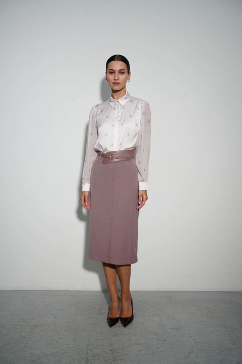 Юбка из жатой органзы с авторским акварельным принтом на фоне цветовой растяжки от сливочного до персикового оттенков. Модель дополнена подкладом для непрозрачности, низ которого оформлен изящным кружевом с ресничками – едва заметная, но романтичная деталь. Разные длины юбки и подклада создают воздушный эффект. Юбка А-силуэта с притачным поясом подчёркивает линию талии и подчёркивает изящные пропорции фигуры. Вытачки на заднем полотнище обеспечивают идеальную посадку, а потайная молния в боковом шве сохраняет лаконичность дизайна. Эта юбка станет изысканным дополнением к вашему гардеробу, подчёркивая нежность и элегантность.