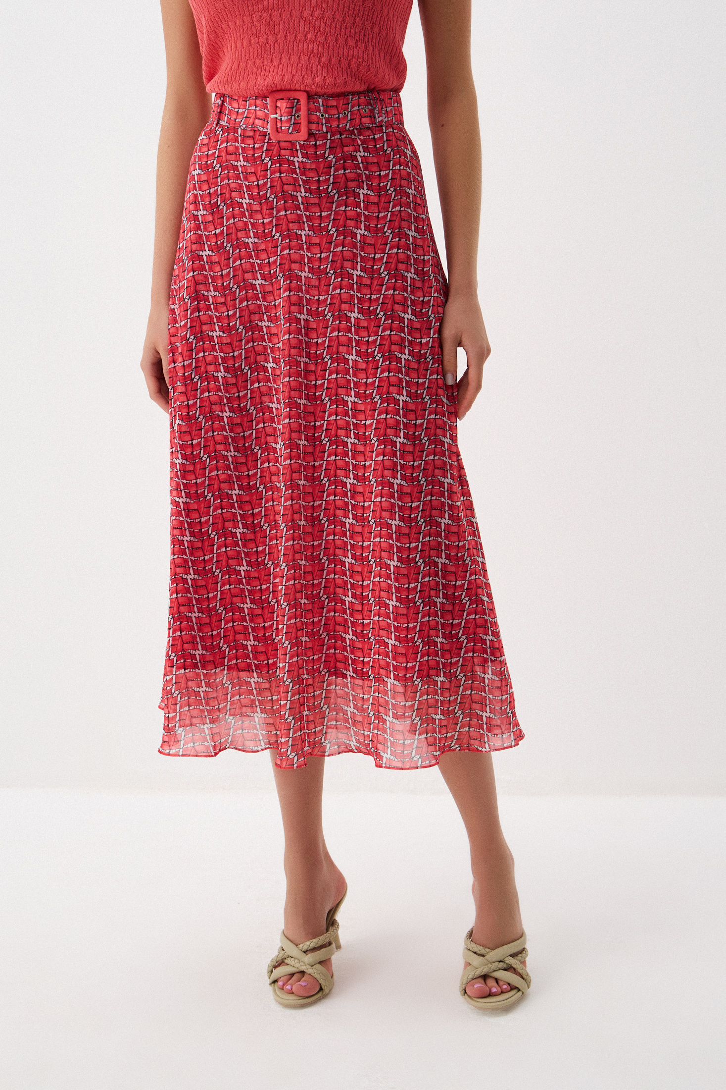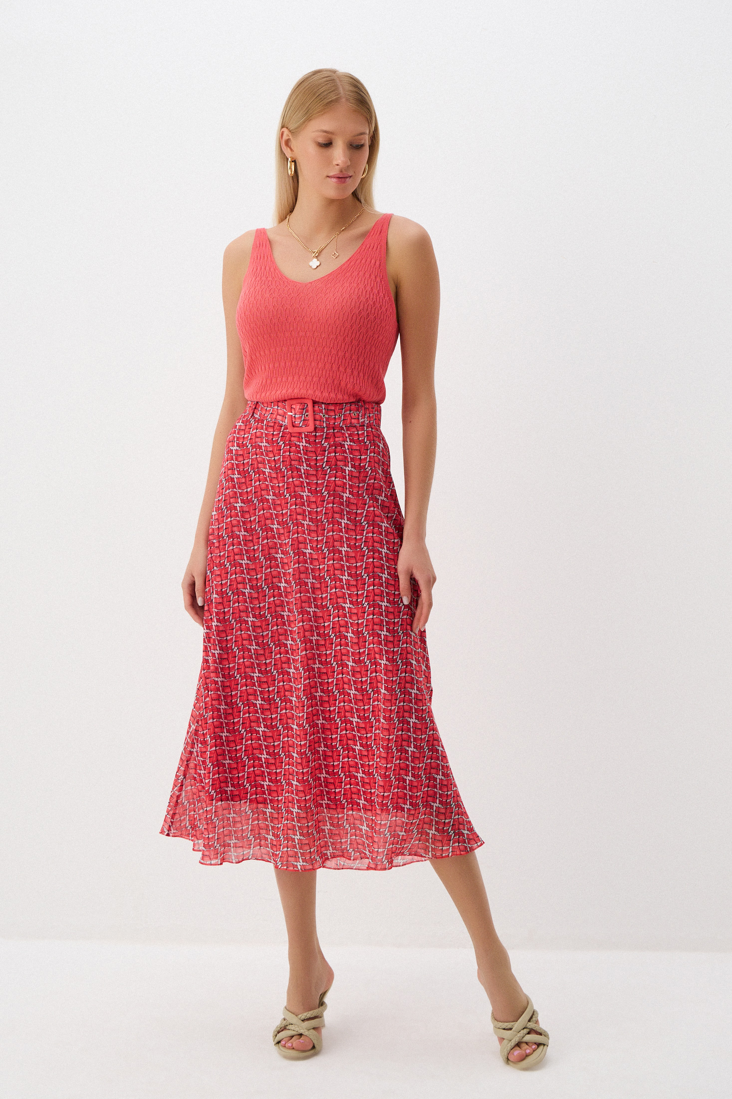 Юбка из воздушного шифона в алом оттенке с авторским принтом – яркий акцент Вашего образа. Ткань драпируется плавными шёлковыми волнами – юбка «оживает» на фигуре, подчёркивая все её достоинства. Юбка дополнена подкладом, обеспечивающим комфорт в носке.