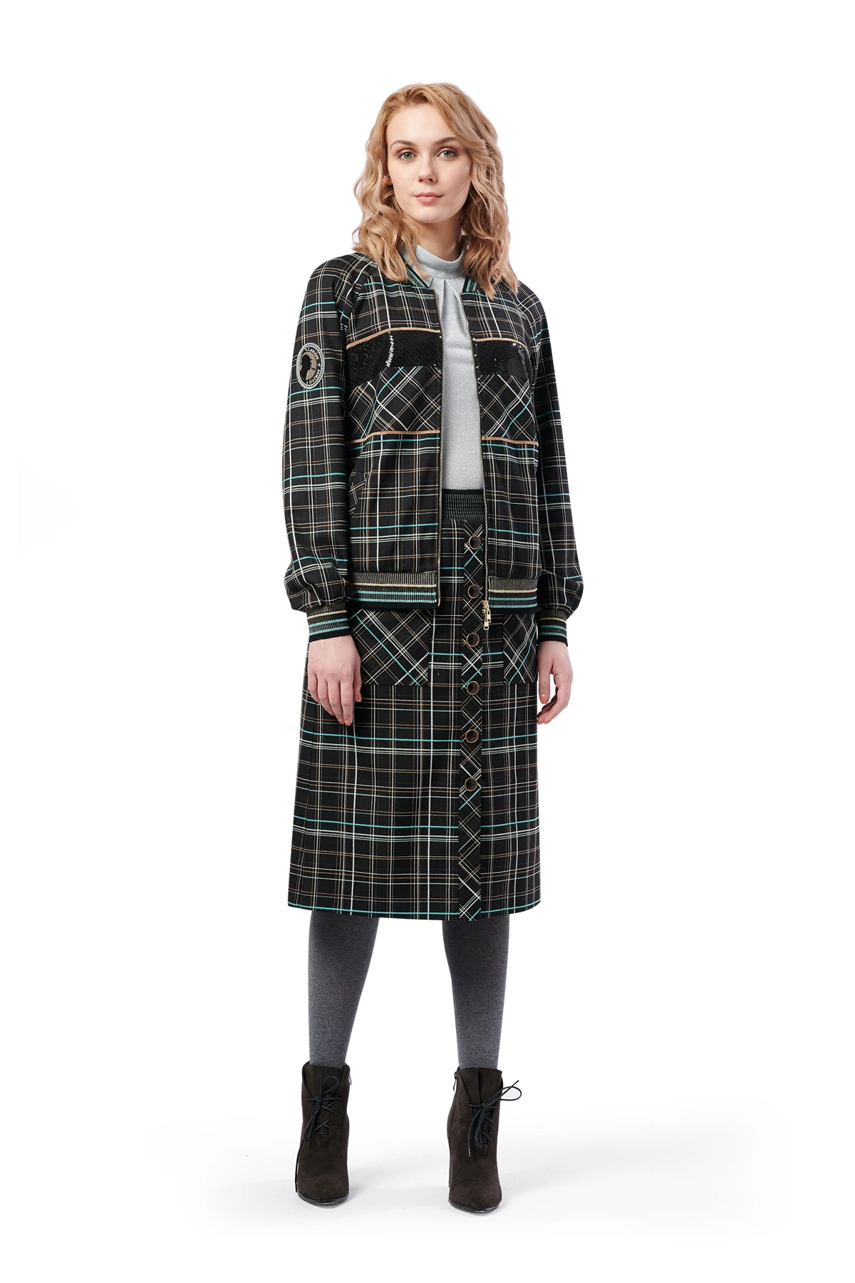 Юбку можно дополнить бомбером с одноимённым названием, а также сочетать её с разными