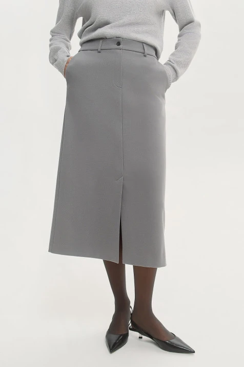 Классическая юбка-карандаш из костюмной ткани – базовая модель, необходимая в каждом гардеробе. Ткань на основе хлопка с добавлением вискозы гигроскопична и по своей фактуре напоминает деним. Эталонные лекала обеспечивают идеальную посадку. Фактурное переплетение и классический крой делают юбку универсальной: в сочетании со строгой рубашкой создастся элегантный образ делового стиля, с женственной блузой – нежный романтический образ, с расслабленным джемпером и кроссовками – образ в стиле casual.