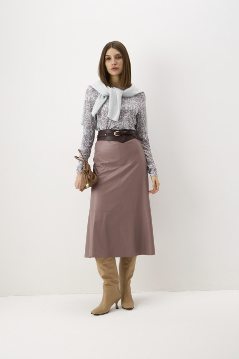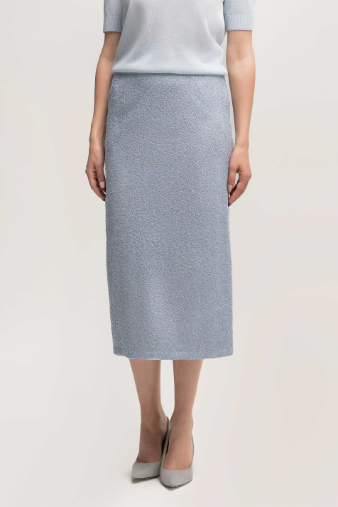 – в комфортном глубоком запахе, который придаёт образу лёгкость и динамичность, оставаясь при этом функциональным элементом дизайна. Юбка дополнена практичными карманами. Застёжка на две фактурные металлические пуговицы.