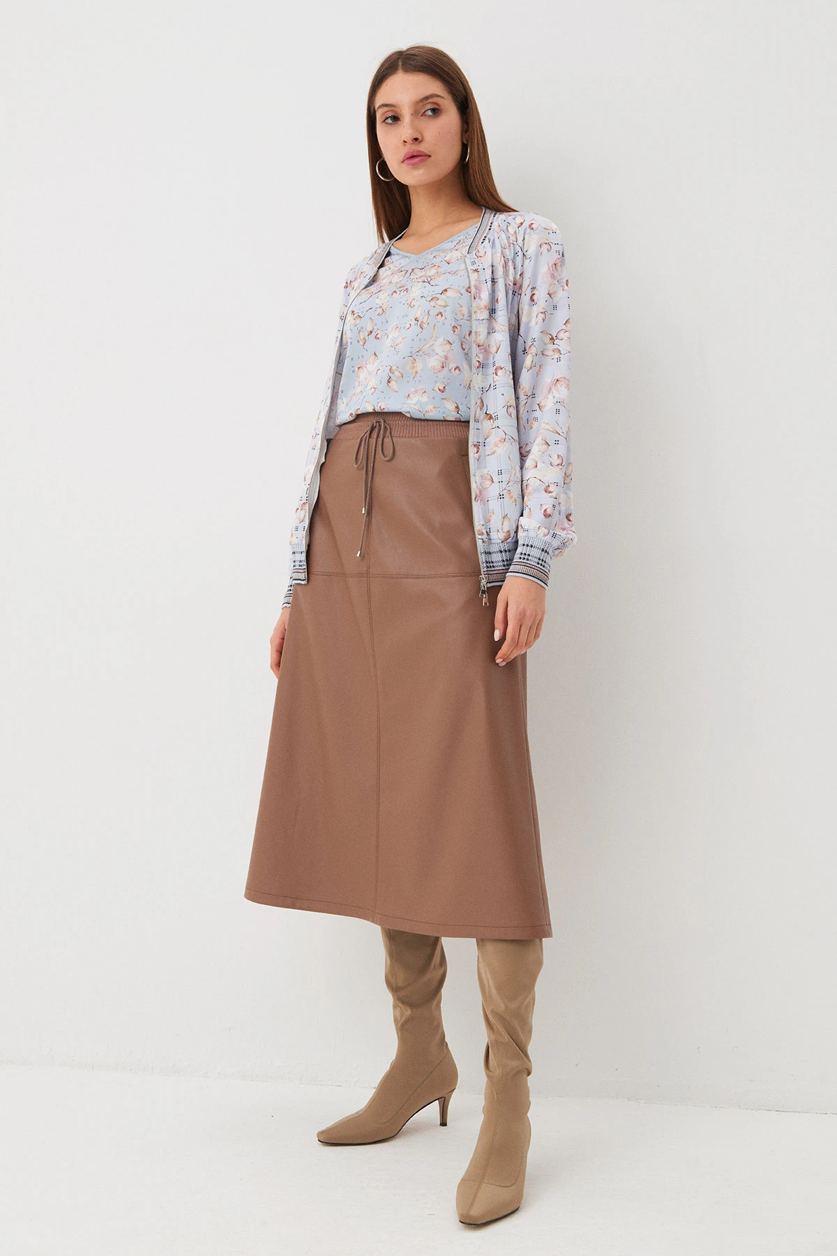 Ткань:Новинка! Юбка из экокожи в ореховом оттенке. Экокожа проста в уходе и устойчива к перепаду температур.