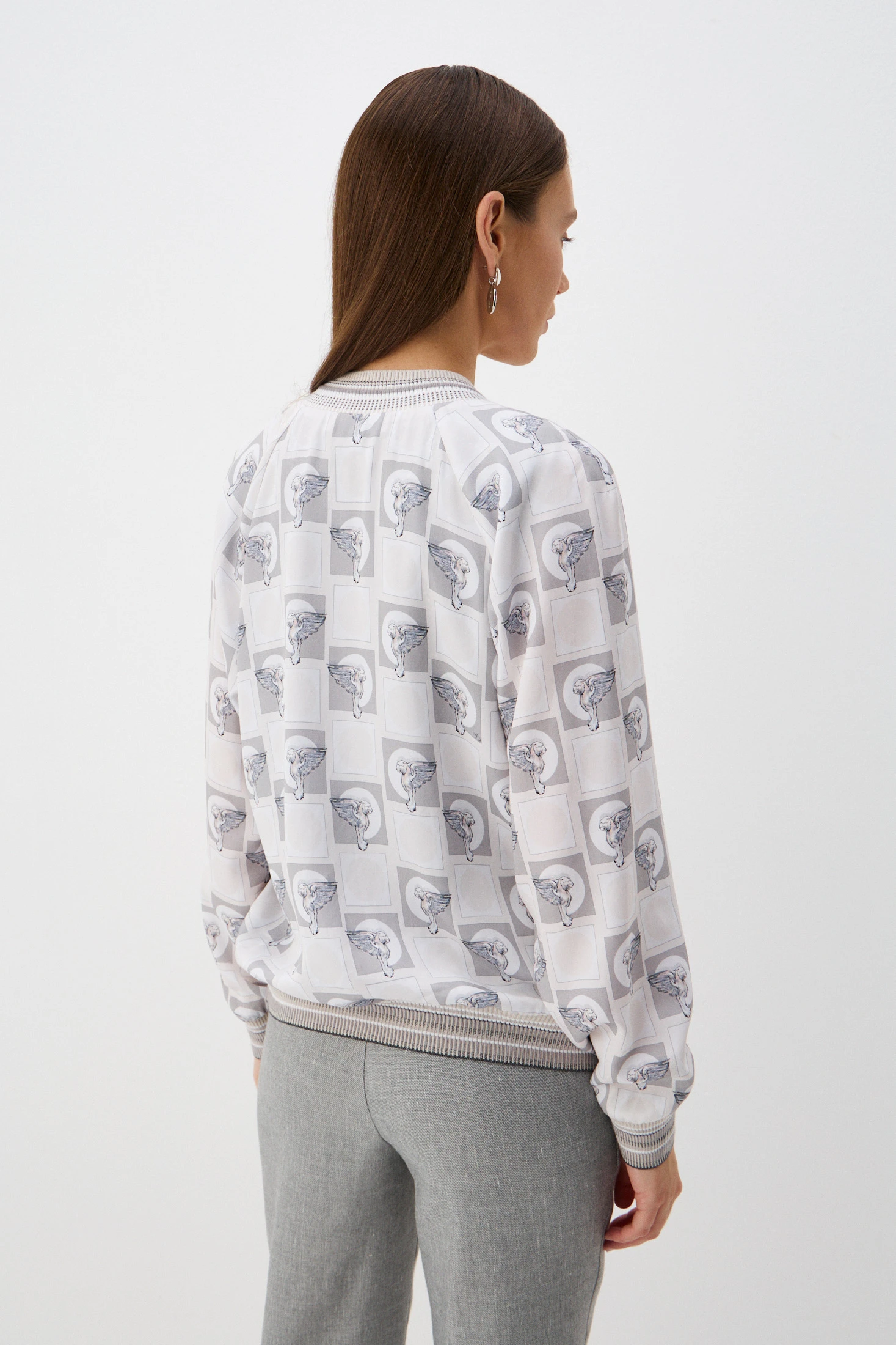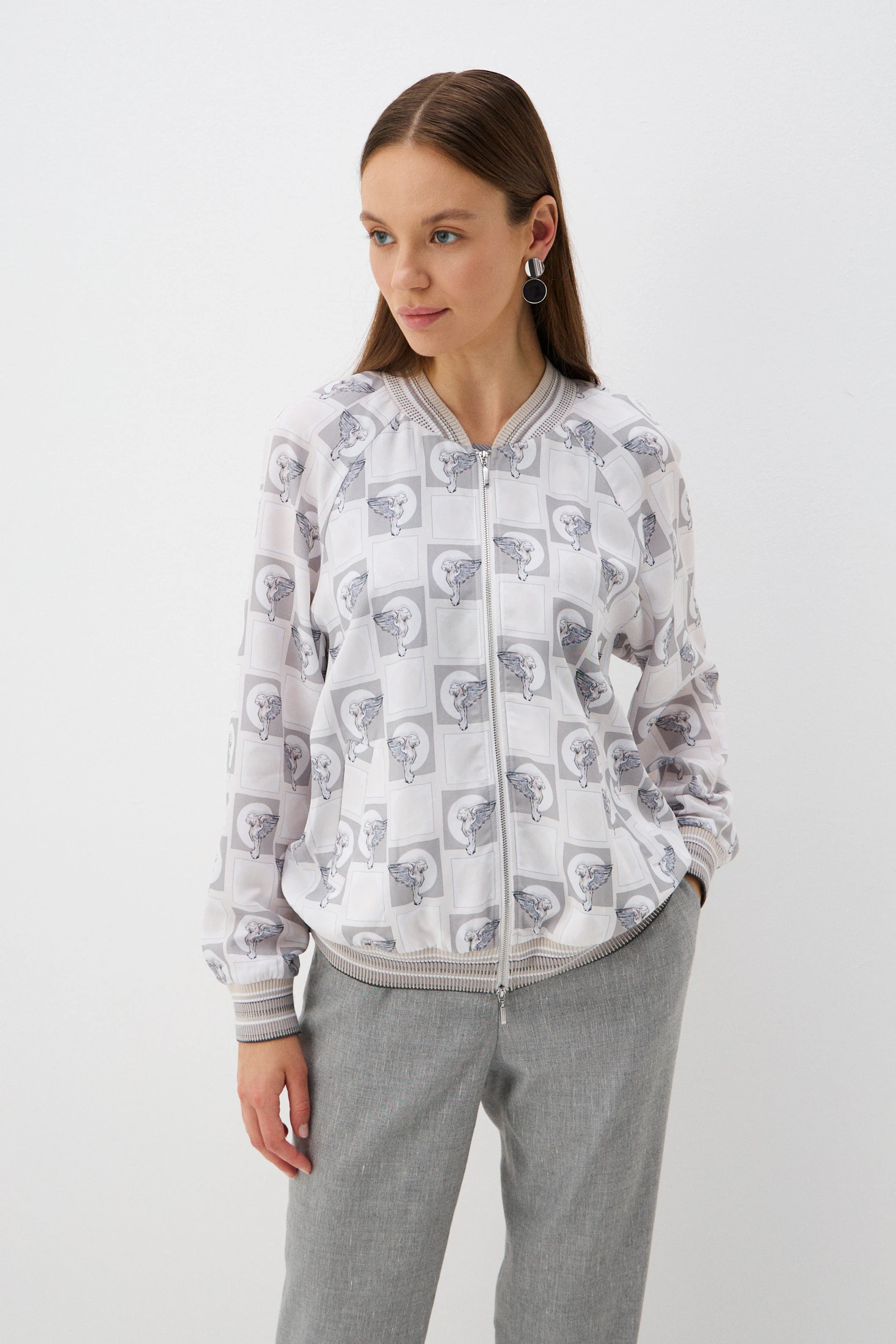 Бомбер «Утренний кофе» - узнаваемая и характерная для бренда модель. Соединяя в себе элементы спорта и романтики, бомберы для многих стали незаменимой моделью весенне-летнего сезона. Детали спортивного стиля поданы деликатно – филигранно подобранные бейки, которые повторяют не только цвета, но и ритм принта, удобные прорезные карманы с листочками. Бомбер будет прекрасно сочетаться с классическими юбками и брюками, джинсами и даже лёгкими платьями.